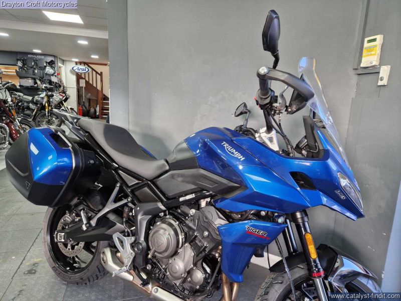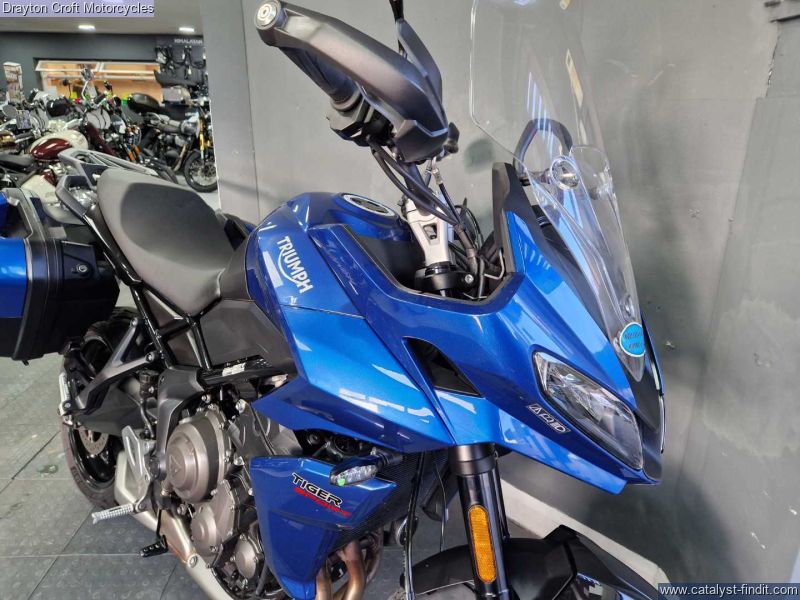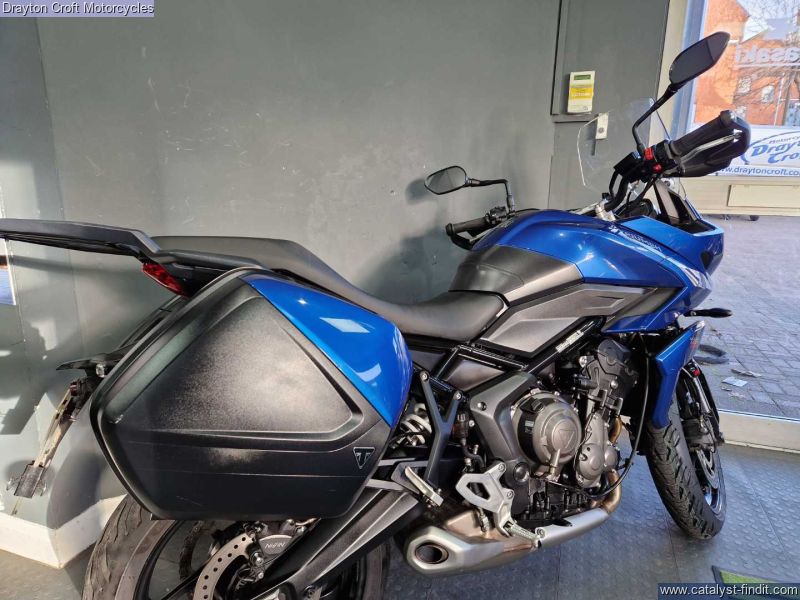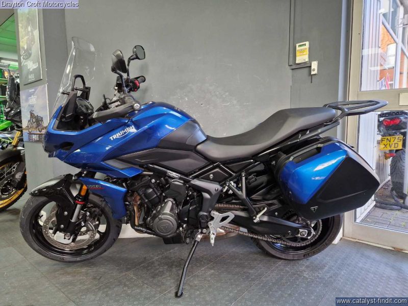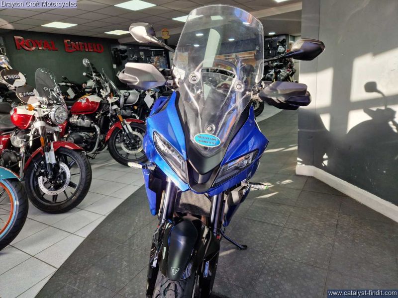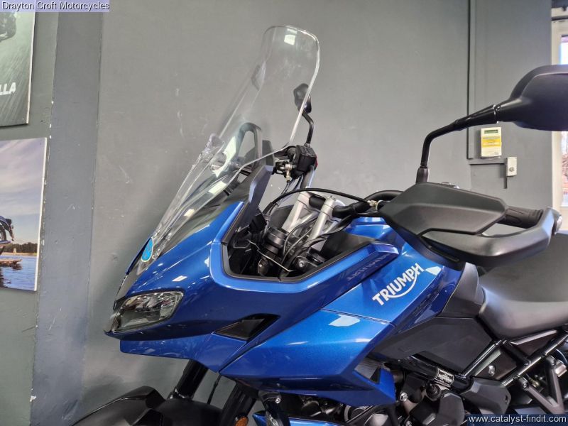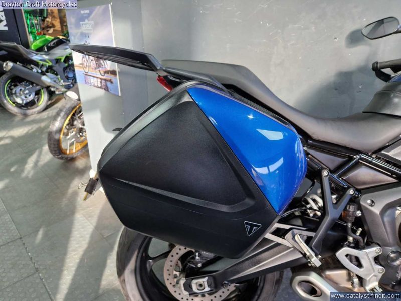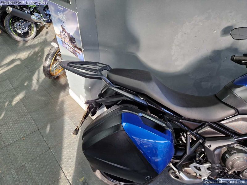 - Stunning example in immaculate condition. Lovely deep Blue colour, standard fittings are Hand Guards and Triumph headed grips and side boxes. Also has a Rear Rack fitted, Data Tag, Tall Screen, just had new tyres and we have all Books and Keys present with the book showing 3 services at 480 miles, 4619 miles and 7209 miles.