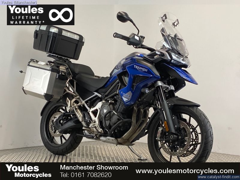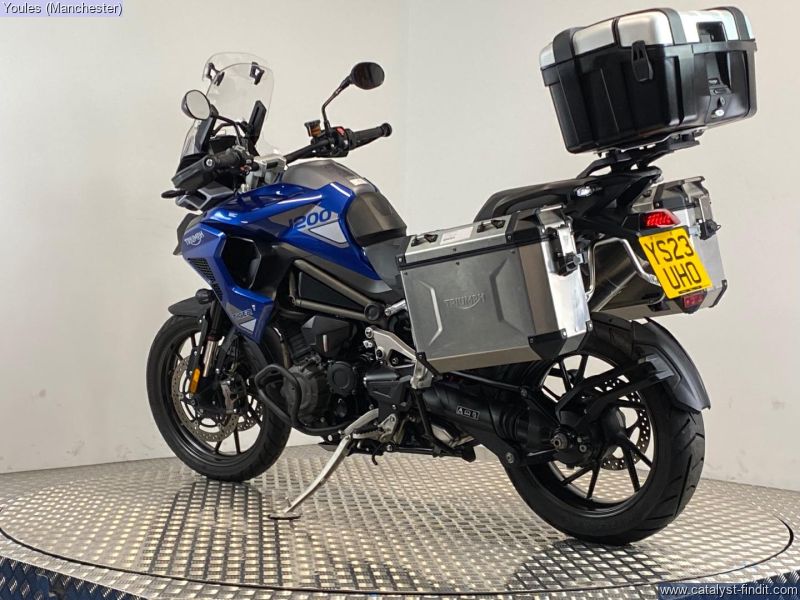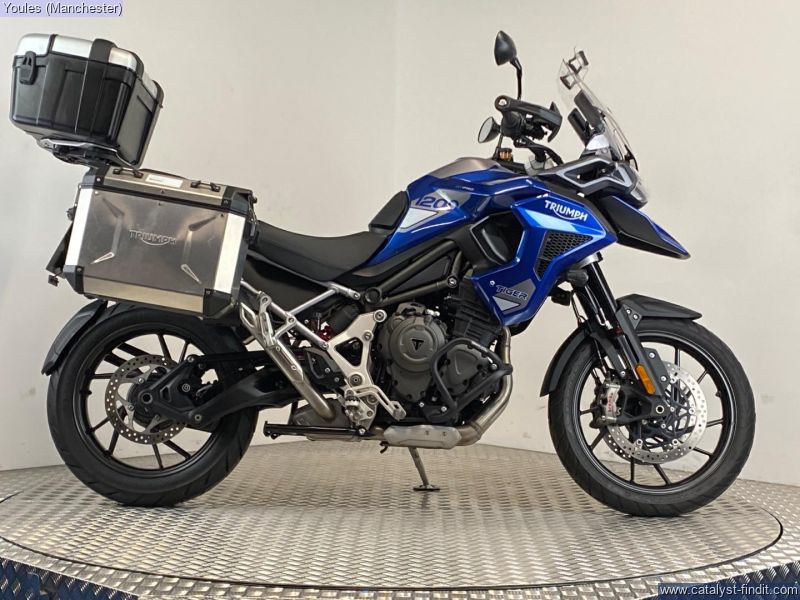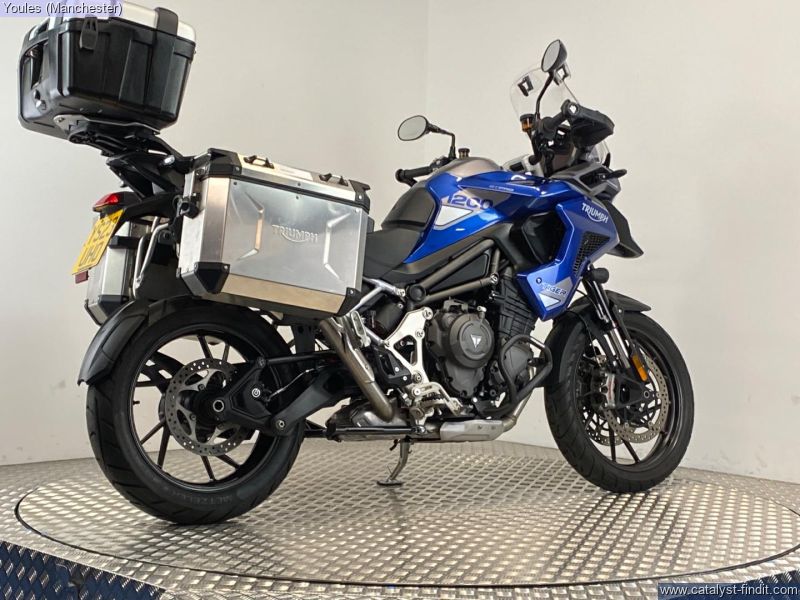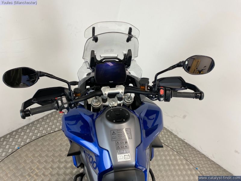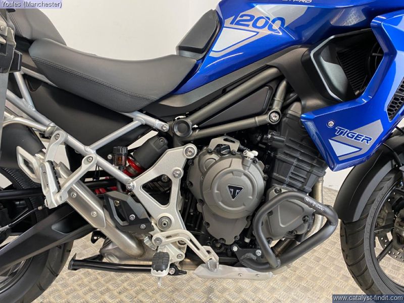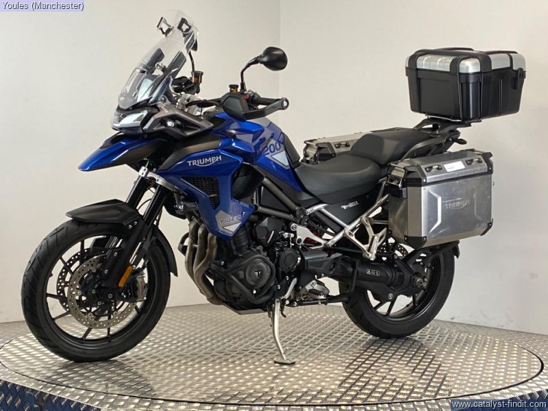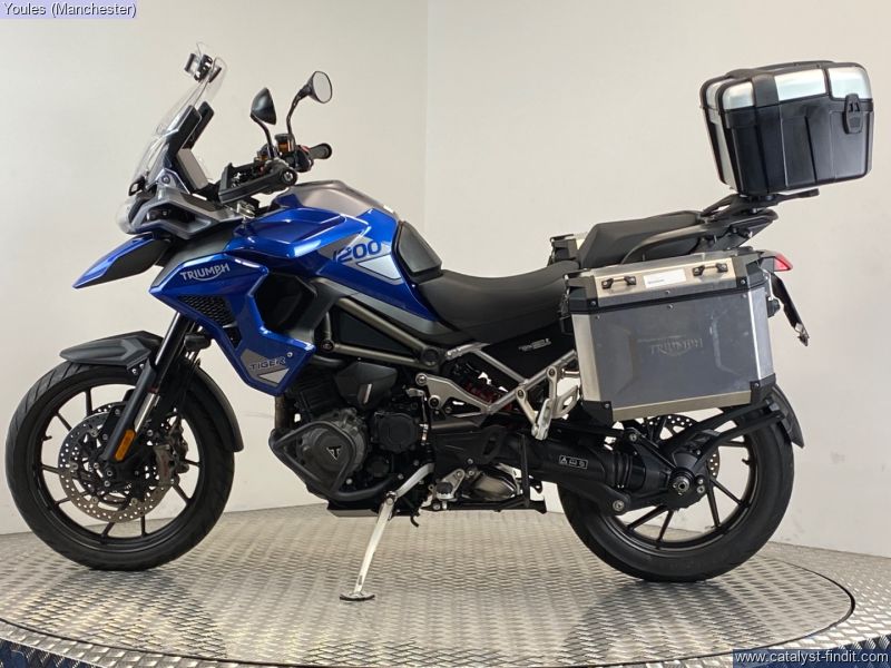 - TIGER 1200 GT PRO IN BLUE. 2 OWNER BIKE ON A 23 REG WITH ONLY 4084 MILES & FSH. EXCELLENT CONDITION & IS FITTED WITH FULL TRIUMPH LUGGAGE COMPRIMISING OF 2 X EXPEDITION ALLUMINIUM PANNIERS & A LARGE TREKKER TOP BOX, LOWER ENGINE BARS & A SCREEN EXTENDER. ALL KEYS, BOOKS & PAPERWORK PRESENT & A GREAT SAVING FROM THE NEW RRP OF £17295.