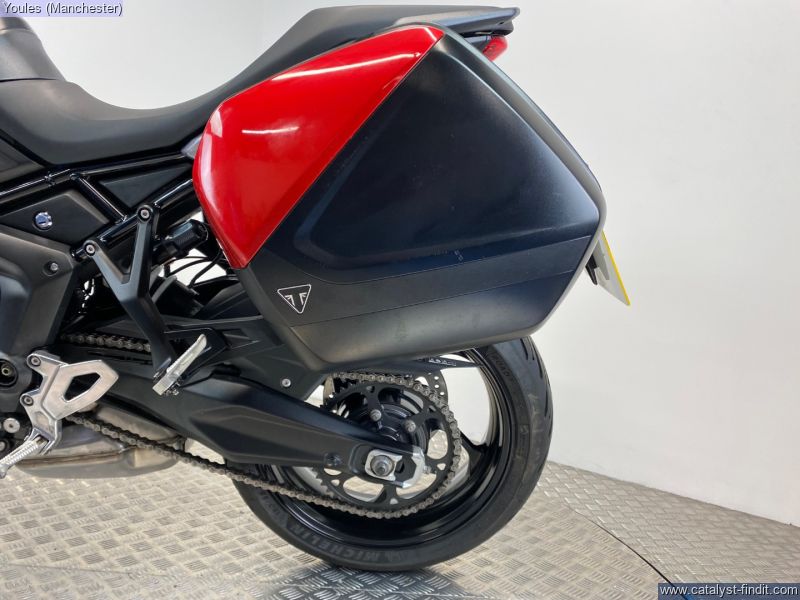 - THE BIKE COMES WITH A HOST OF EXTRAS. THE ACCESSORIES FITTED INCLUDE A SET OF TRIUMPH GENUINE PANNIERS, GENUINE HEATED GRIPS, TANK PAD, GENUINE FRAME PROTECTION AND FRONT FORK PROTECTORS.