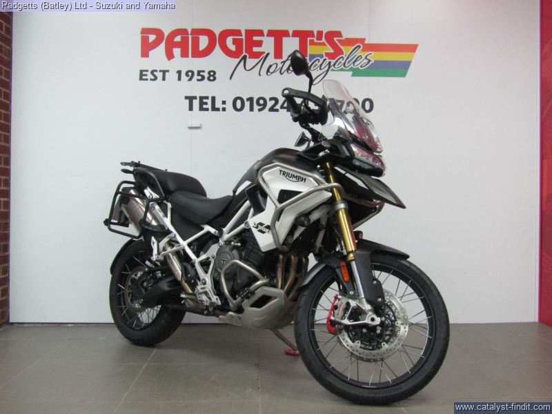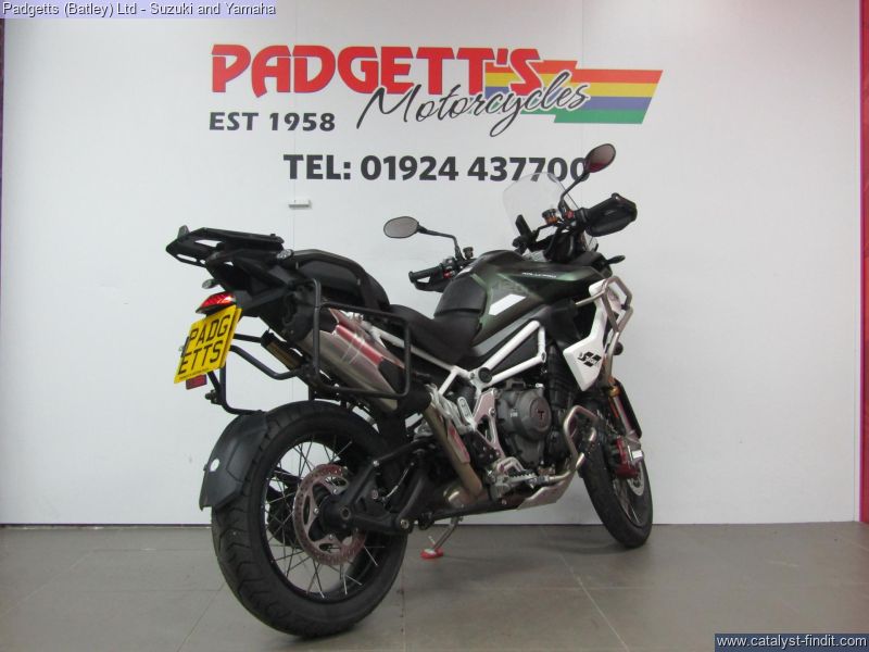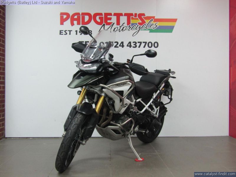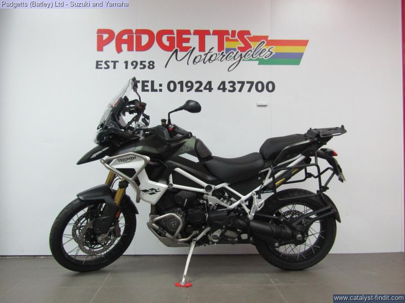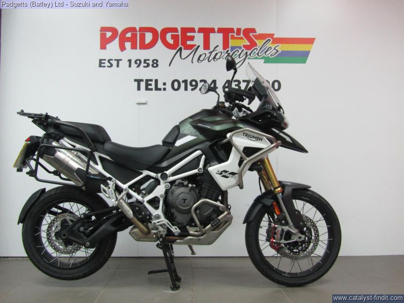 - We present here for sale this Triumph Tiger 1200 Rally Pro in Green. The bike has only covered 6,968 miles and is in great condition. The bike has been fitted with some superb extras including: - Pannier Rails, Givi Top Box, Upper & Lower Engine Bars, Fog Lights, Garmin Mount and Optimate Lead. The bike comes complete with Original Owner’s Manual, 2 Keys, Service Book Showing Full Service History (2 dealer stamps – last shown as 16/10/2025 @ 6,922 miles) and Log book. The bike is available for viewing and is well worth a look. Finance is available and is subject to status. Part Exchanges welcome. Nationwide delivery can be arranged from as little as £75. Usual Dealer Facilities including a Large range of clothing, helmets & accessories. Call Padgett's Motorcycles today to ensure that you don't miss out; Suzuki Sales Centre 01924 609808, Honda Sales Centre 01924 437700 and Yamaha Sales Centre 01924 478491.