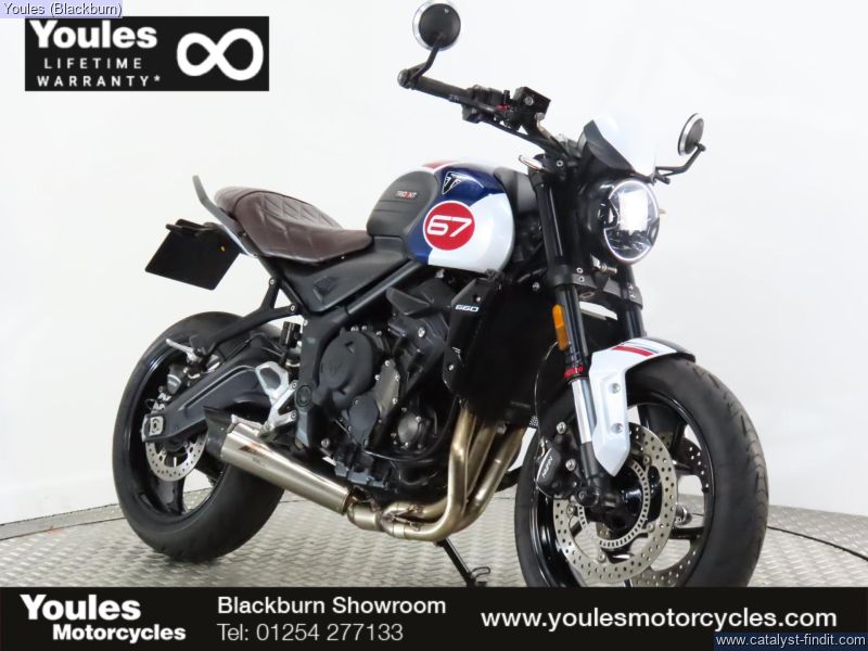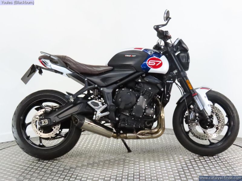 - 2024 Triumph Trident 660 Triple Tribute in the Slippery Sam colours with 8285 miles and one owner from new. The slippery sam featured shift assist, custom belly pan and colour coded fly screen on top of the standard bike.