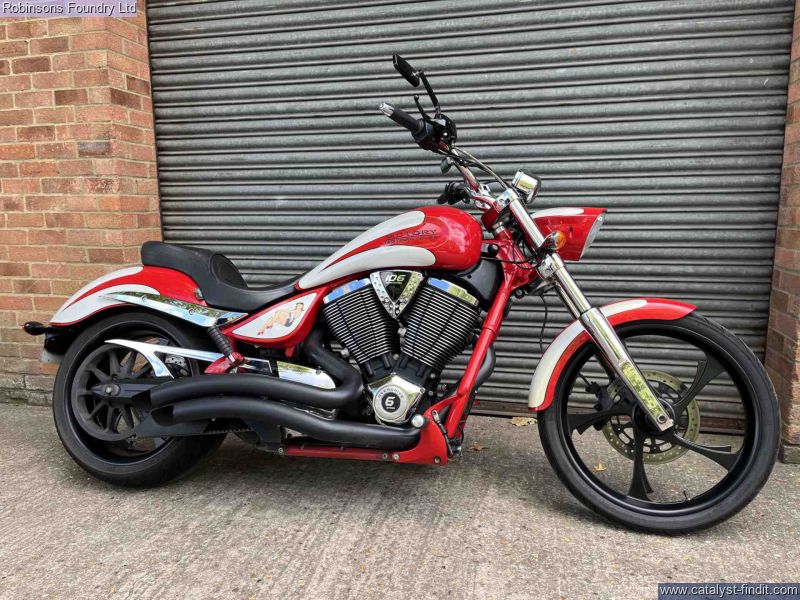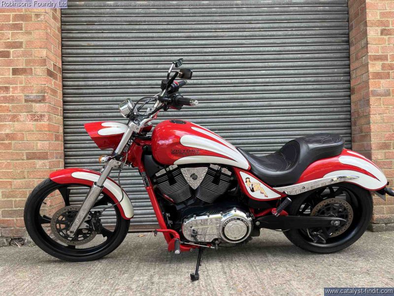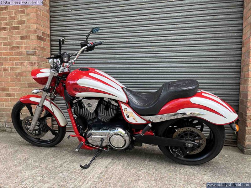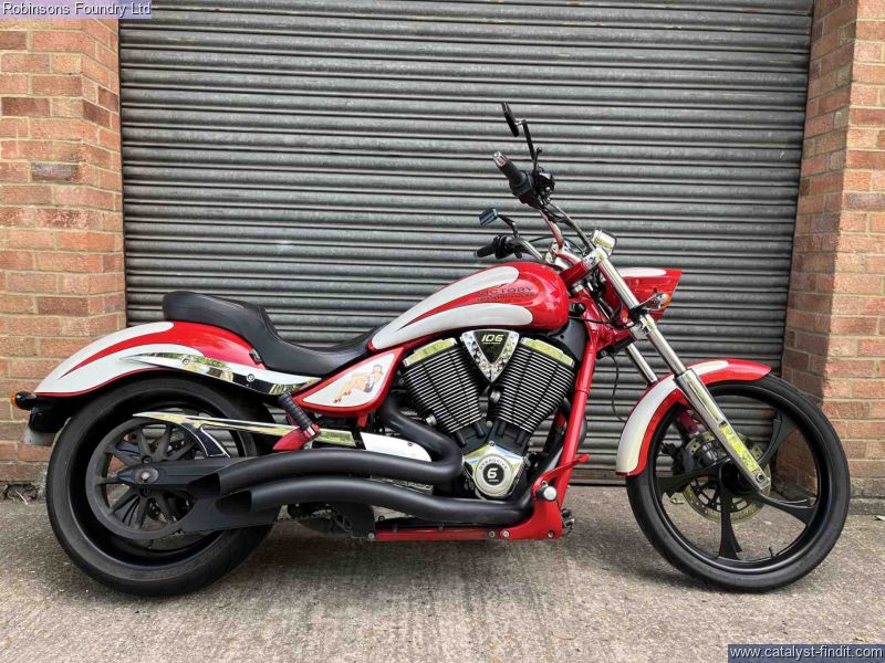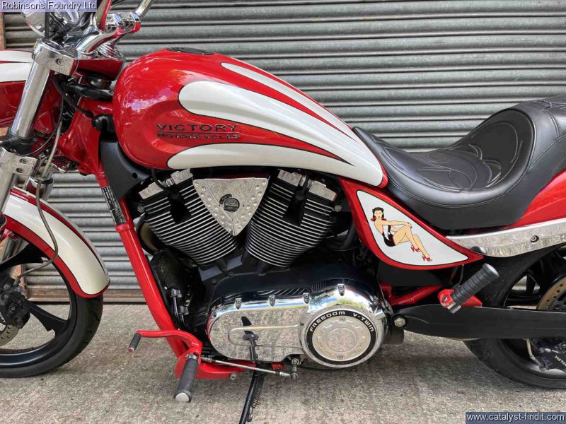- 2012 Victory Jackpot in Fireball Red & Pearl White with Victory graphics, 13598 miles on the clock and three former owners. Fitted with Freedom Performance Sharp Curve Radius exhausts and comes with two keys. All vehicles are subject to a comprehensive pre delivery inspection prior to collection and come with a minimum of 6 months MOT and 3 months/3000 mile warranty - with the option to extend (subject to T&Cs). HPI Checked. Walkaround videos and delivery available upon request. Secure with £100 deposit. Finance available (T&C's Apply). Our used stock changes constantly please contact us if you cannot see what you are looking for.