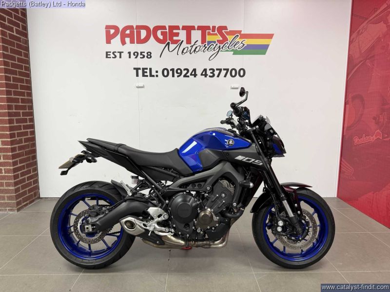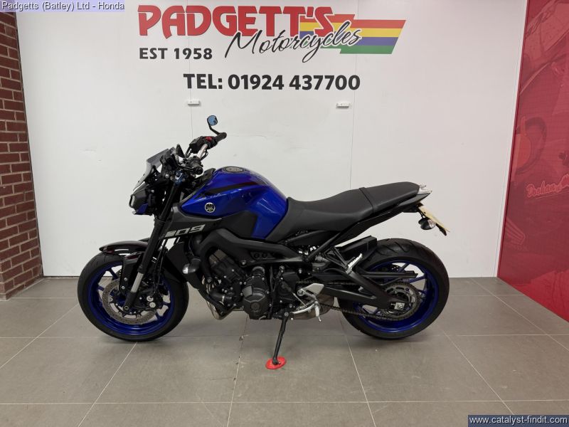- We present here for sale this Yamaha MT-09 in Blue. The bike has only covered 4,325 miles and is in good condition. The bike comes with some great extras including: - Quickshifter, Tail Tidy, Fly Screen, MS5 Levers, Radiator Guard and Bar End Mirrors. The bike comes complete with Original Owner’s Manual, 3 Keys, Service Book - showing lots of service history (3 stamps – last @ 3,649 miles in May-2020) and Log book. The bike is available for viewing and is well worth a look. Finance is available and is subject to status. Part Exchanges welcome. Nationwide delivery can be arranged from as little as £75. Usual Dealer Facilities including a large range of clothing, helmets & accessories. Call Padgett's Motorcycles today to ensure that you don't miss out; Suzuki Sales Centre 01924 609808, Honda Sales Centre 01924 437700 and Yamaha Sales Centre 01924 478491.
