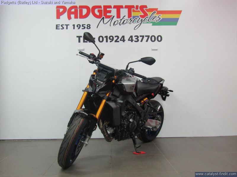 - We present here for sale this 2024 Yamaha MT-09SP. The ultimate CP3 Hyper Naked born out of the Dark Side of Japan, the MT-09 SP evokes pure excitement with a premium specification offering Supersport-level handling and precision, combined with next level track-focused technology. It takes the already exceptional MT-09 to a deeper level of Darkness. MASTER OF DARKNESS. Experience the exhilarating torque of the 890cc EU5+ CP3 engine like never before, with enhanced track-focused rider modes customisable to suit different circuits or conditions. The SP-exclusive DLC-coated 41 mm KYB gold front forks are paired with the fully adjustable Öhlins rear shock for the most refined Hyper Naked riding experience yet. Reach the next level in braking performance with Brembo Stylema calipers, offering a more precise braking feeling from the first touch of the lever. The exclusive R1M inspired look and premium features including a brushed aluminium swing arm, exemplify the SP quality, while the new Smart Key System marks a new step in technology for the Hyper Naked range. The bike is available for viewing and is well worth a look. Finance is available and is subject to status. Nationwide delivery can be arranged from as little as £75. Usual Dealer facilities including a large range of clothing, helmets & accessories. Call Padgett's Motorcycles today to ensure that you don't miss out; Suzuki Sales Centre 01924 609808, Honda Sales Centre 01924 437700 and Yamaha Sales Centre 01924 478491.