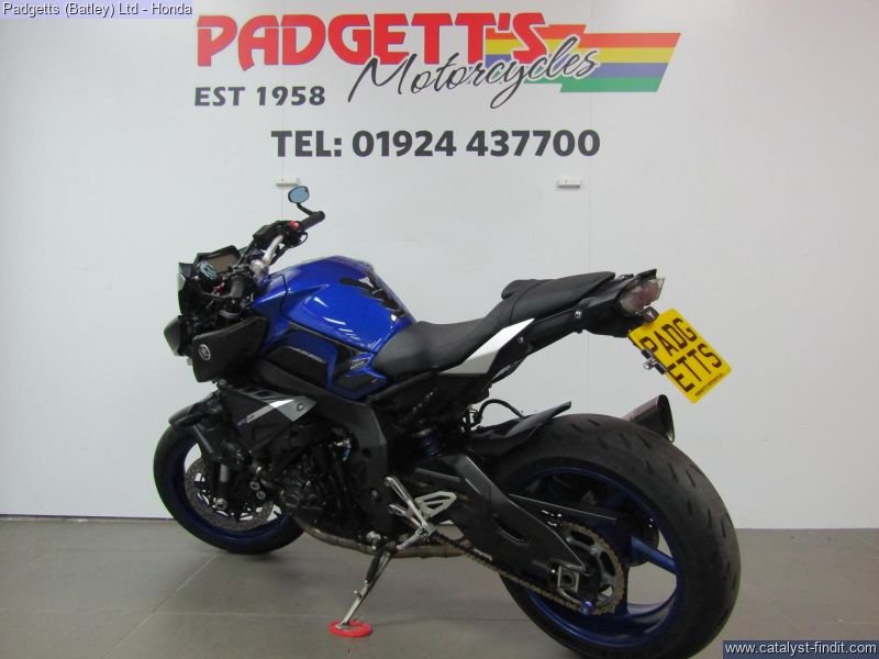 - We present here for sale this Yamaha MT-10 in Blue. The bike has only covered 12,547 miles and is in great condition. The bike has been fitted with some superb extras including: - Genuine Yamaha Heated Grips, Radiator Guard, Oil Cooler Guard, Akrapovic Pipe, De-Cat Pipe, Tail Tidy, Crash Bobbins, Racetorx Shift Assist, Tank Pad, Tank Pad Sides, Paddock Stand Bobbins, Bar End Mirrors and MZS Short Levers. The bike comes complete with Original Owner’s Manual, 3 Keys, Service Book Showing Part Service History (4 Services – last @12,005 on 14/03/2025) and Log book. The bike is available for viewing and is well worth a look. Finance is available and is subject to status. Part Exchanges welcome. Nationwide delivery can be arranged from as little as £75. Usual Dealer Facilities including a Large range of clothing, helmets & accessories. Call Padgett's Motorcycles today to ensure that you don't miss out; Suzuki Sales Centre 01924 609808, Honda Sales Centre 01924 437700 and Yamaha Sales Centre 01924 478491.