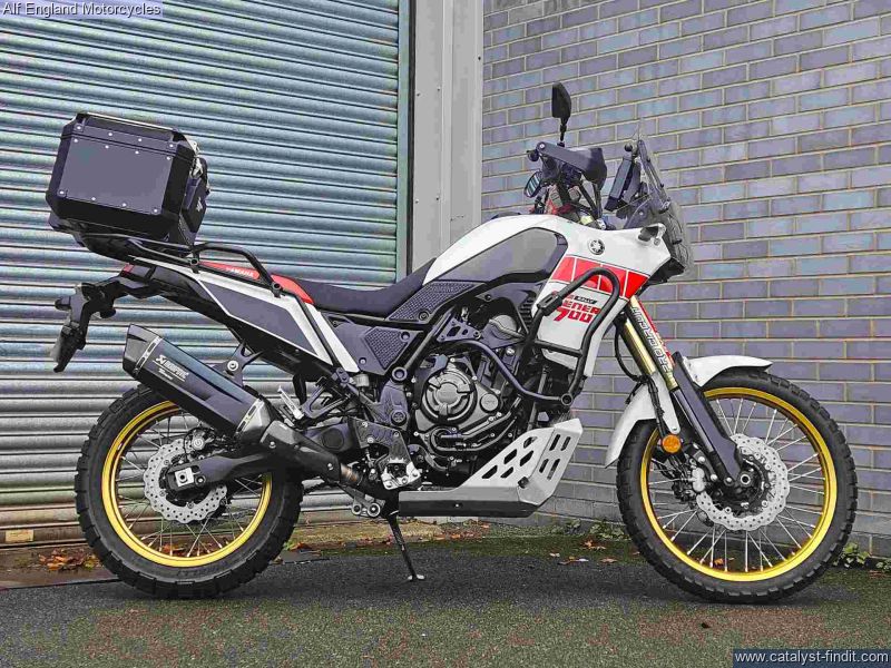 - This Yamaha Tenere 700 Rally Edition comes in immaculate condition, stacked with goodies! The bike comes with: Akrapovic exhaust; Yamaha top box; engine bars; upgraded sump guard; radiator guard; tank pads; heel plate guard; Oxford heated grips; headlight guard; lowering links (standard available) plus more.