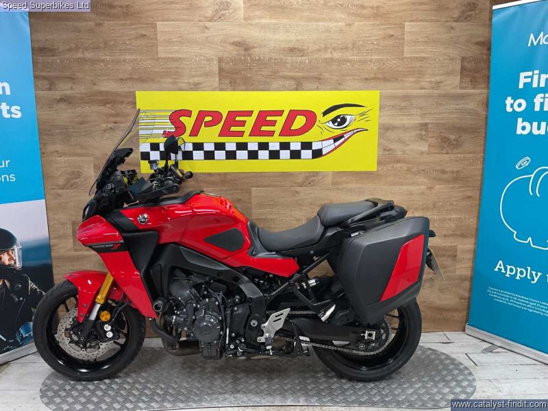 - 2023 Yamaha Tracer 9 GT, only 3583 miles and 1 owner from new, hand book and spare key, the bike is in excellent condition and comes fitted with panniers, frame protectors and a Tom Tom Sat Nav. The 2023 Yamaha Tracer 9 GT is one of the most advanced sports tourer Yamaha has ever built.This is a fine sports tourer that should keep the Tracer name at the top end of the sale charts upon its for a very long time, but the extra specs of the GT really make it an essential purchase. Retail bikes: Competitive finance & great part exchange allowances. Call our team for an easy, no obligation quote. All our retail bikes come with a full PDI, valet & 3 months total cover warranty (additional £75). Credit & debits cards accepted. Delivery in mainland UK from only £125 + VAT. Compulsory admin fee of £100 for 3rd party finance.