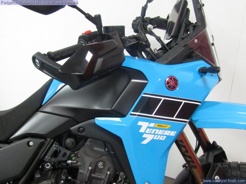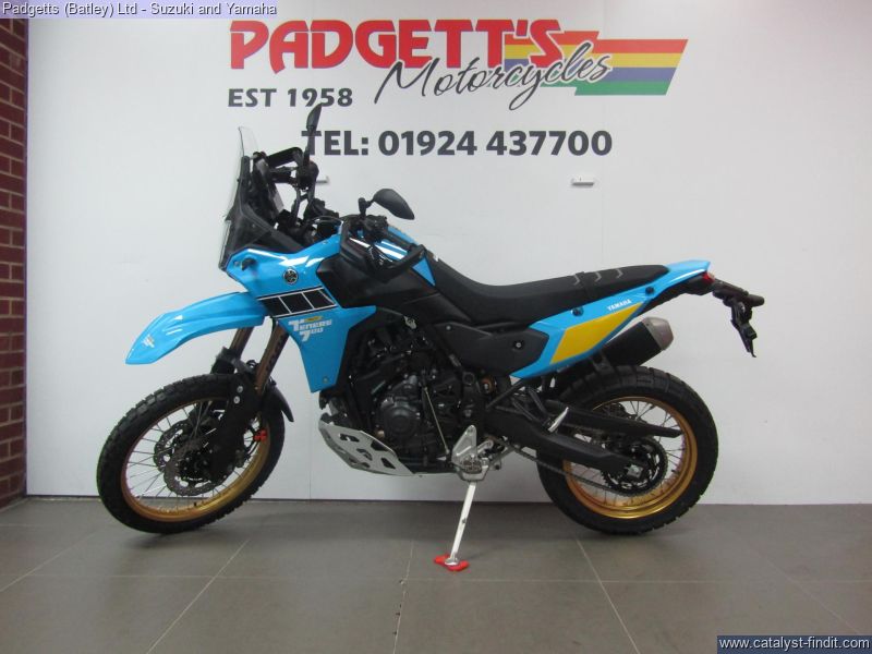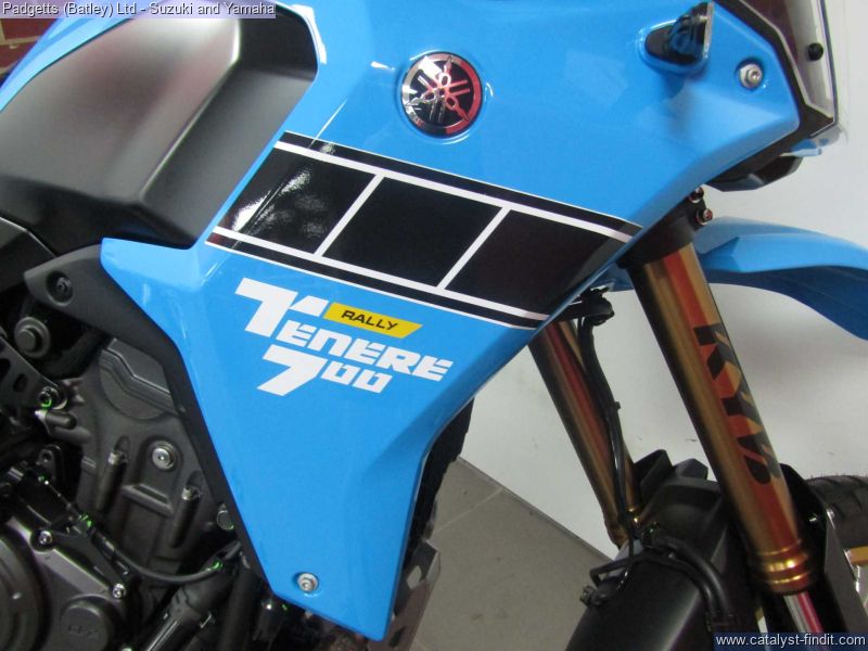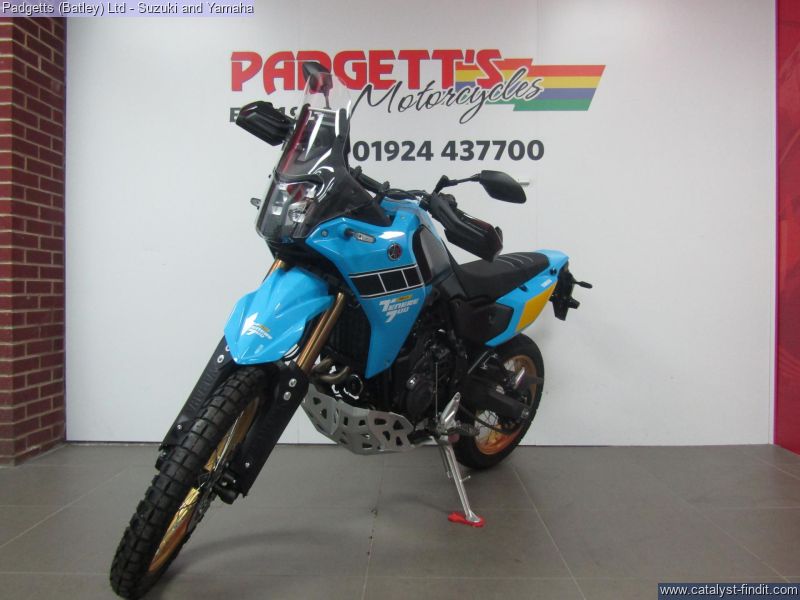 - We present here for sale this Yamaha Tenere 700 Rally. Featuring rally-bred technology including fully adjustable long travel KYB front forks with strengthened tubes, a 4mm aluminium sump guard, lightweight serrated titanium footpegs and slimline bodywork, the Ténéré 700 Rally is one seriously purposeful adventure bike. Distinguishing this Rally version is a unique heritage- inspired colour scheme with gold coloured wheels and Yamaha's iconic speed block design, topped off with the high level front mudguard synonymous with desert racers. With a dominating saddle height of 910mm, the Ténéré 700 Rally's new seat, re-designed fuel tank and modified clutch cover offer more flexibility for you to move around off-road. The cockpit features a new 6.3" TFT dashboard, which comes with a unique 'Raid' layout that presents only the most relevant information you need when taking on the most challenging terrain. Displayed in the style of a rally road book, it's one of three dashboard layouts and just one of the ways in which you can personalize your riding experience and adapt it to the conditions. Nationwide delivery can be arranged from as little as £75. Usual Dealer Facilities including a Large range of clothing, helmets & accessories. Call Padgett's Motorcycles today to ensure that you don't miss out; Suzuki Sales Centre 01924 609808, Honda Sales Centre 01924 437700 and Yamaha Sales Centre 01924 478491.