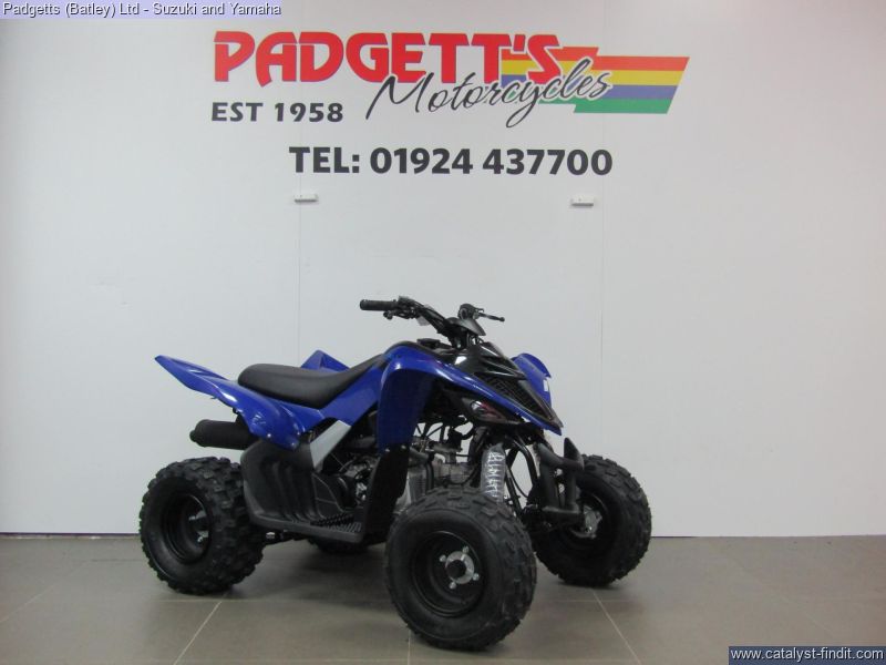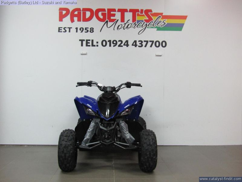- We present here for sale this Yamaha 2025 YFM90R. The YFM110R may be built with your minis in mind, but it's massive on features, many found on larger Yamaha models - including double A-arm independent front suspension, a rear disc brake, CVT transmission and electric start. #DRIVENBYVICTORY. REINSPIRING A NEW GENERATION OF RACERS. The YFM110R balances the impressive power and responsiveness of a 112cc fuel-injected engine with features to give you total peace of mind. A simple TCI plug-in adjusts engine power to suit different riding abilities, while a handlebar parking brake means the YFM110R stays exactly where you left it. Easy to use, fun to ride and simple to maintain, the Yamaha YFM110R is the clear choice for responsible adults – and with its YFM700R racer-inspired styling, this mini version of a grown-up ATV has got to be at the top of every kid’s wish list! The bike is available for viewing and is well worth a look. Finance is available and is subject to status. Part Exchanges welcome. Nationwide delivery can be arranged from as little as £75. Usual Dealer Facilities including a Large range of clothing, helmets & accessories. Call Padgett's Motorcycles today to ensure that you don't miss out; Suzuki Sales Centre 01924 609808, Honda Sales Centre 01924 437700 and Yamaha Sales Centre 01924 478491.