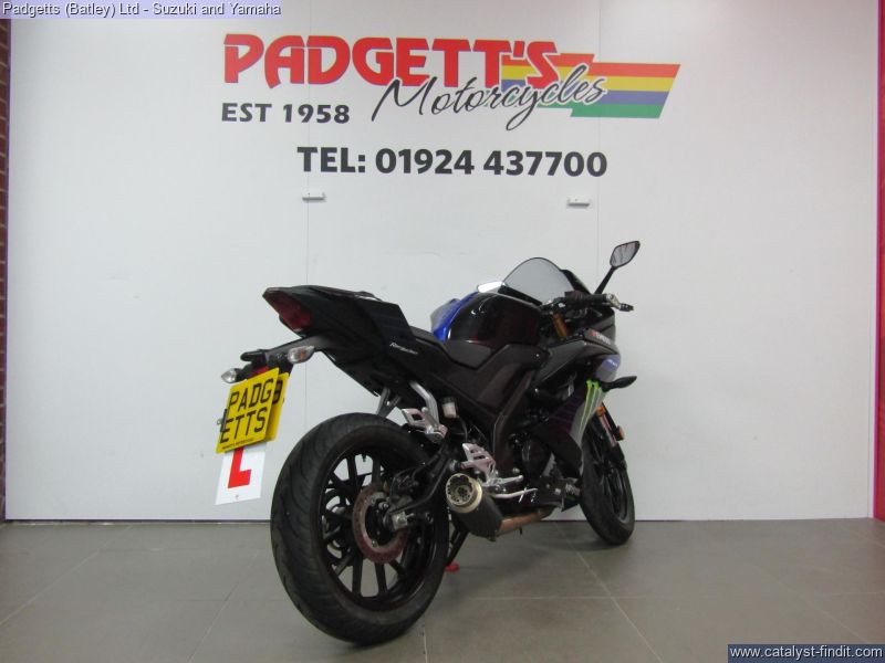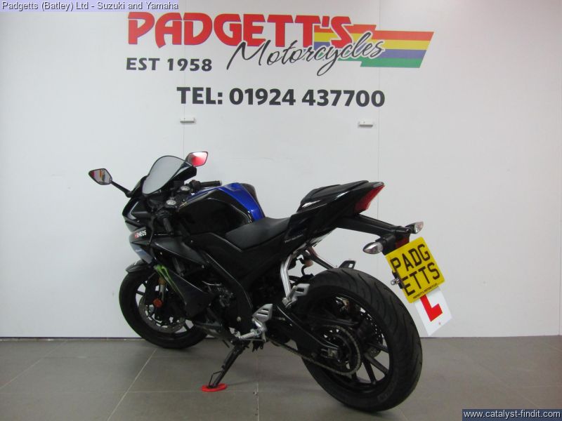 - We present here for sale this Yamaha R125 in Black. The bike has only covered 14,713 miles and is in good condition. The bike has been fitted with some superb extras including: - Mivv Exhaust, Lever Guard, Smoked Screen and Decal Kit. The bike comes complete with 2 Keys, Service Book Showing Part Service History (4 dealer stamps – last shown as October 2024 @ 12,096 miles) and Log book. The bike is available for viewing and is well worth a look. Finance is available and is subject to status. Part Exchanges welcome. Nationwide delivery can be arranged from as little as £75. Usual Dealer Facilities including a Large range of clothing, helmets & accessories. Call Padgett's Motorcycles today to ensure that you don't miss out; Suzuki Sales Centre 01924 609808, Honda Sales Centre 01924 437700 and Yamaha Sales Centre 01924 478491.