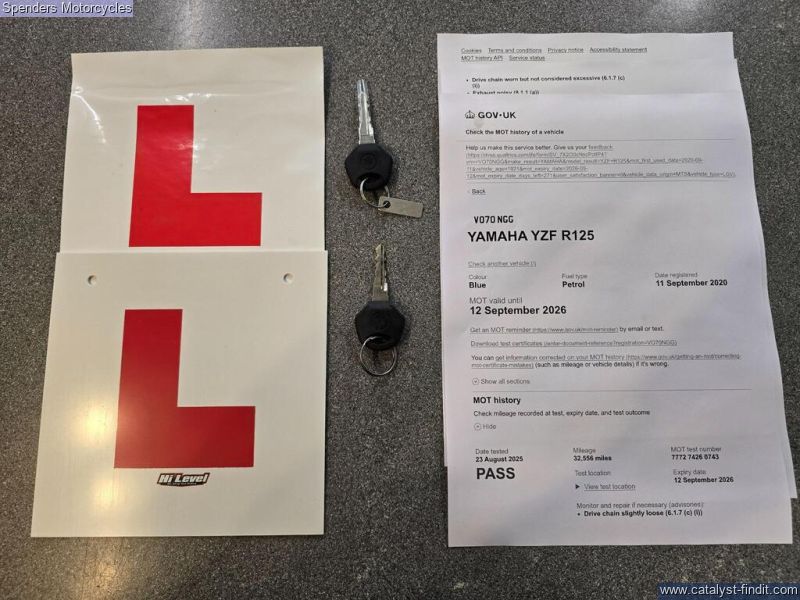 - Good Condition, 1 Months Warranty Included, ABS Model, Just Been Serviced, New L Plates Included If Needed, A Very Fabulous Model From Yamaha, Looks Absolutely Stunning, Perfect Learner Legal 125cc, Features Include Dark Tinted Screen, Tank Decal Protector, Carbon Petrol Cap Decals, Blue Handle Bar Grips, Carbon Look Front Fairing Extenders, Rear Stand Bobbins, Also Comes With Spare Keys, Full MOT History, V5 Logbook, HPI Clear,, Blue, Secure Today With A £50.00 Refundable Holding Deposit Upon Viewing, Please Call for More Info.