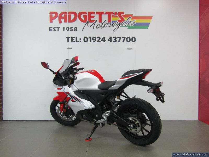 - We present here for sale this 2026 Yamaha YZF-R125. Manufactured to a best-in-class specification and featuring pure race-bred engine and chassis technology, the R125 is Yamaha's ultimate lightweight Supersport. With new graphics as well as a next generation Icon Blue colour scheme that strengthens its R-Series family DNA, this lightweight 125cc Supersport has a serious big-bike attitude. R-Connection. Featuring race-developed Supersport geometry, the Deltabox chassis is equipped with state-of-the-art 41mm KYB upside- down front forks and link-type rear suspension for super- agile handling. The footrest/seat/handlebar layout gives a sporty riding position for optimum control – and smartphone-connected 5-inch TFT instruments keep you informed – and in touch. And equipped with a powerful central LED headlight and dual LED position lights and M- shaped nose, its aggressive new face oozes pure R-Series DNA. For strong performance at all speeds the 125cc 4- stroke engine is equipped with Yamaha’s power-boosting Variable Valve Actuation (VVA) technology and exhaust updates – and the traction control system and assist & slipper clutch enhance controllability when you’re accelerating and decelerating. With a premium finish available in a choice of next generation Icon Blue and Tech Black with new graphics, R125 has everything you need to connect to R/World. The bike is available for viewing and is well worth a look. Finance is available and is subject to status. Part Exchanges welcome. Nationwide delivery can be arranged from as little as £75. Usual Dealer Facilities including a Large range of clothing, helmets & accessories. Call Padgett's Motorcycles today to ensure that you don't miss out; Suzuki Sales Centre 01924 609808, Honda Sales Centre 01924 437700 and Yamaha Sales Centre 01924 478491.