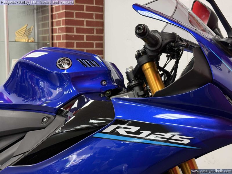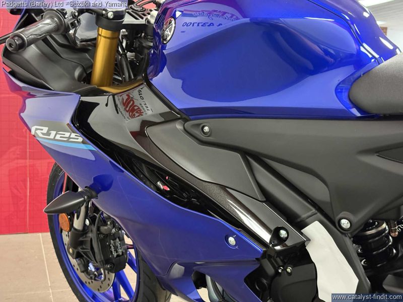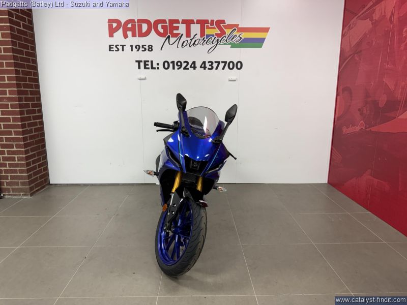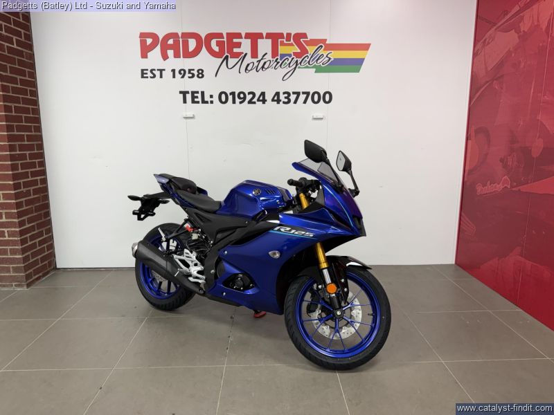 - We present here for sale this 2026 Yamaha YZF-R125. Manufactured to a best-in-class specification and featuring pure race-bred engine and chassis technology, the R125 is Yamaha's ultimate lightweight Supersport. With new graphics as well as a next generation Icon Blue, Tech Black and 70th Anniversary colour schemes that strengthens its R-Series family DNA, this lightweight 125cc Supersport has a serious big-bike attitude. R-CONNECTION. Featuring race-developed Supersport geometry, the Deltabox chassis is equipped with state-of-the-art 41mm KYB upside-down front forks and link- type rear suspension for super-agile handling. The footrest/seat/handlebar layout gives a sporty riding position for optimum control – and smartphone-connected 5- inch TFT instruments keep you informed – and in touch. In addition, equipped with a powerful central LED headlight and dual LED position lights and M-shaped nose, its aggressive new face oozes pure R-Series DNA. For strong performance at all speeds the 125cc 4-stroke engine is equipped with Yamaha’s power-boosting Variable Valve Actuation (VVA) technology and exhaust updates – and the traction control system and assist & slipper clutch enhance controllability when you’re accelerating and decelerating. With a premium finish available in a choice of next generation Icon Blue and Tech Black with new graphics or the stunning 70th Anniversary red and white, R125 has everything you need to connect to R/World. The bike is available for viewing and is well worth a look. Finance is available and is subject to status. Part Exchanges welcome. Nationwide delivery can be arranged from as little as £75. Usual Dealer Facilities including a Large range of clothing, helmets & accessories. Call Padgett’s Motorcycles today to ensure that you do not miss out; Suzuki Sales Centre 01924 609808, Honda Sales Centre 01924 437700 and Yamaha Sales Centre 01924 478491.