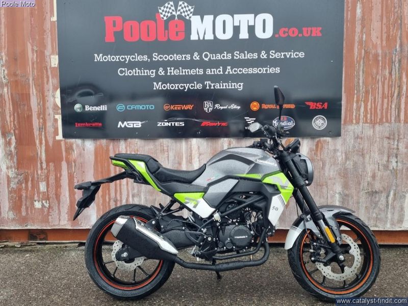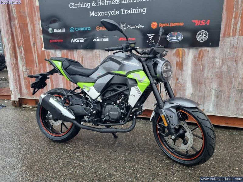 - The Yamimoto CK50 seamlessly blends sleek naked-bike styling with exceptional fuel efficiency. Featuring digital clocks, a modern EFI system, and a dependable laydown engine, this bike boasts an impressive fuel economy of over 120mpg.