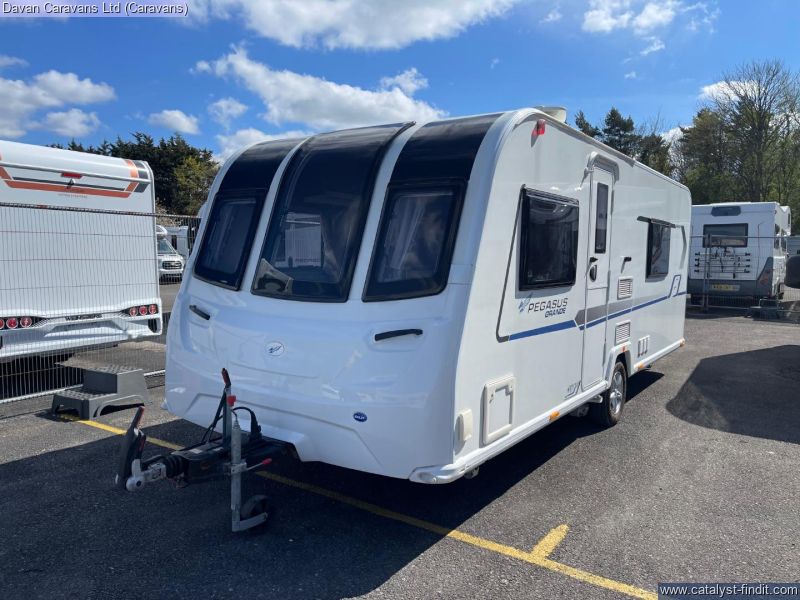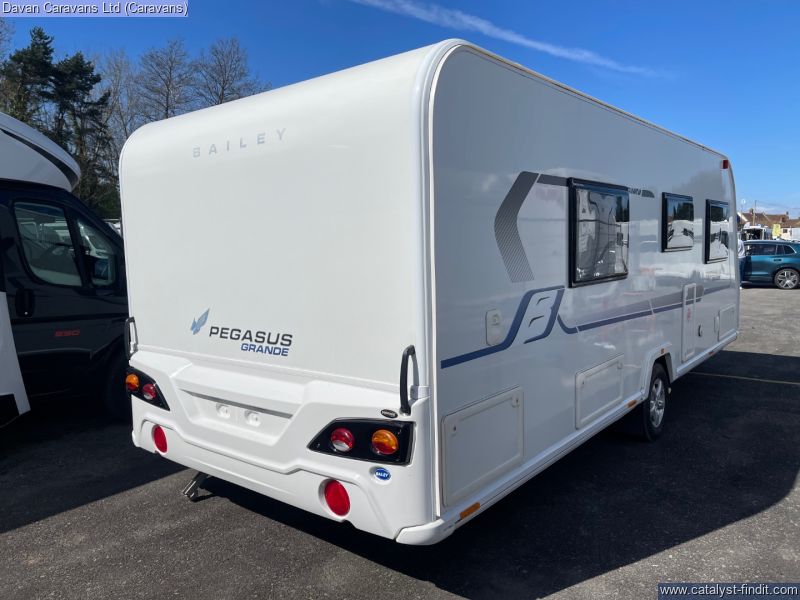 - This Bailey Peagasus Grande 4 berth is a 8ft spacious Caravan .It has open-plan layout with fixed rear single beds and a large, full-width end washroom.Enjoy the views of the countryside, or coastline in the full lenth front window flooding the caravan with light. A living area for a couple or perfect for a family of four. An oven, grill and microwave, fridge freezer as well as a extrior bbq point perfect for summers cheffing.