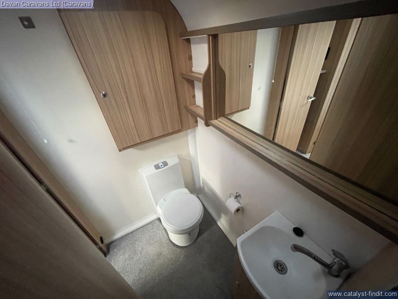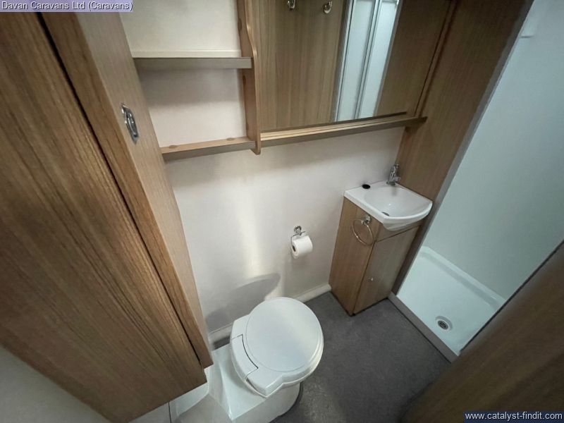 The bathroom is neatly designed with a shower and all the essentials, making it perfect for longer trips. Being a Pegasus, it comes with Bailey’s thoughtful details that make touring simple and stress- free.