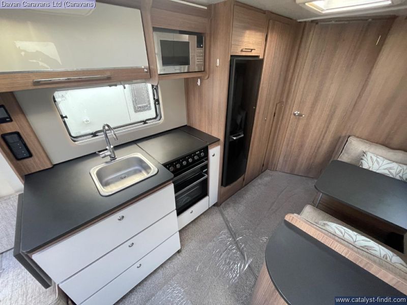 At the rear, the full- width washroom gives you the luxury of a proper changing area, a spacious shower, and that sense of privacy you don’t always find in a single-axle caravan. As a Unicorn, it comes with the premium finish you’d expect—Alde heating, quality upholstery, and a solid, well-cared-for feel throughout. Side Dinette Layout This caravan includes: