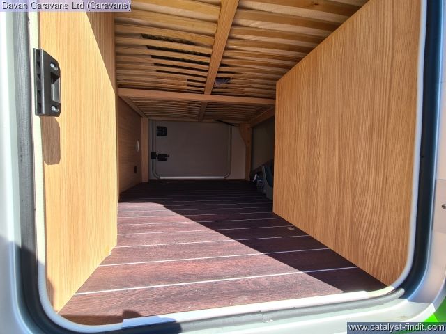 From the durable upholstery to the mood lighting, every detail whispers quality. The dinette transforms into a cosy sleeping area, and the elevated double bed offers both comfort and storage beneath. Thanks to its lightweight construction and aerodynamic profile, towing feels easy and efficient—making it a favourite among both first-time tourers and seasoned caravaners. Large Garage This caravan includes: