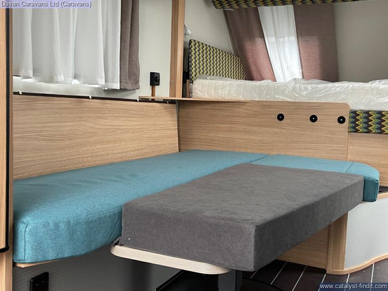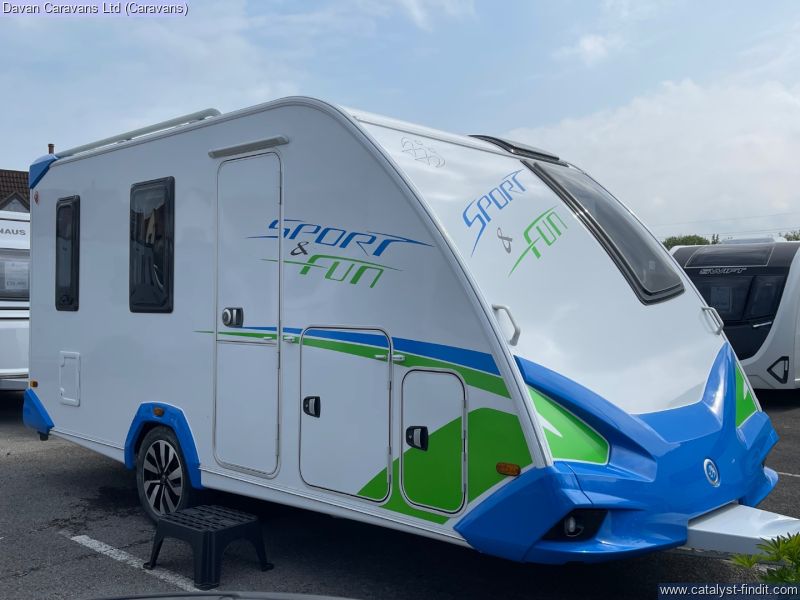 - The 2024 Knaus Sport and Fun is perfect for those who enjoy thegreat outdoors! This caravan can accommodate up to 4 guests mwith its comfortable fixed double bed, practical dinette conversion. The extra wide rear door and generous underbed garage provide ample storage for all your adventure gear, so you can bring your kayaks or surfboards along with you. The Sport and Fun also features a large wardrobe and overhead storage lockers, ensuring that all your belongings stay secure and organized. Whether you're planning a weekend camping trip or an extended vacation, the Sport and Fun is the perfect caravan for your outdoor adventures!