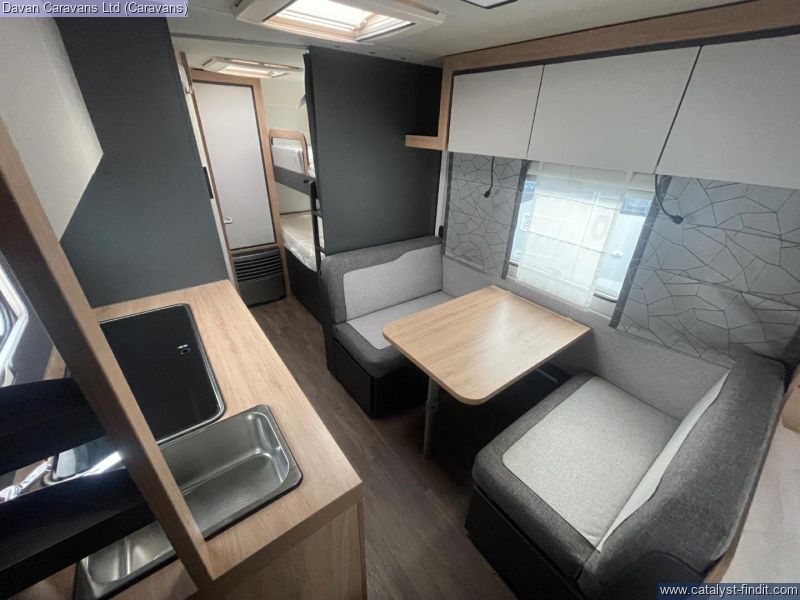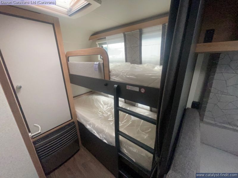 Large windows provide natural light, creating an open and welcoming atmosphere. Built with Knaus’ renowned attention to detail, the Sport 500KD combines durability with ease of towing, making it a reliable choice for both short breaks and extended journeys. This model reflects a balance of modern design and everyday usability, giving owners confidence in every mile. Bunk beds This caravan includes: