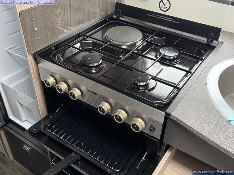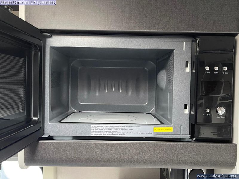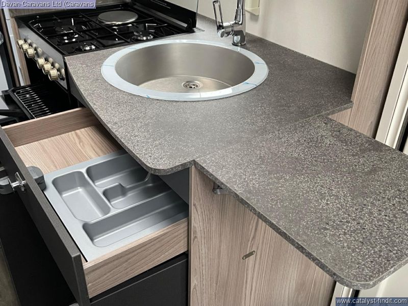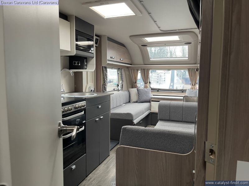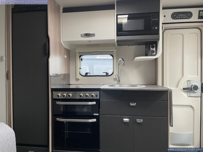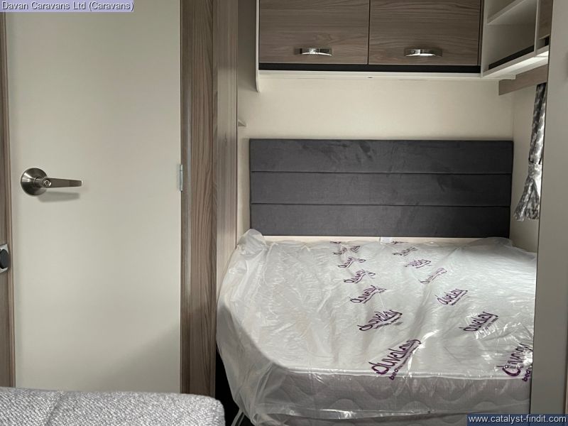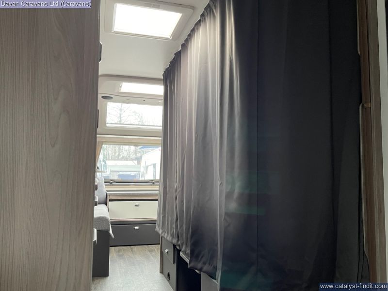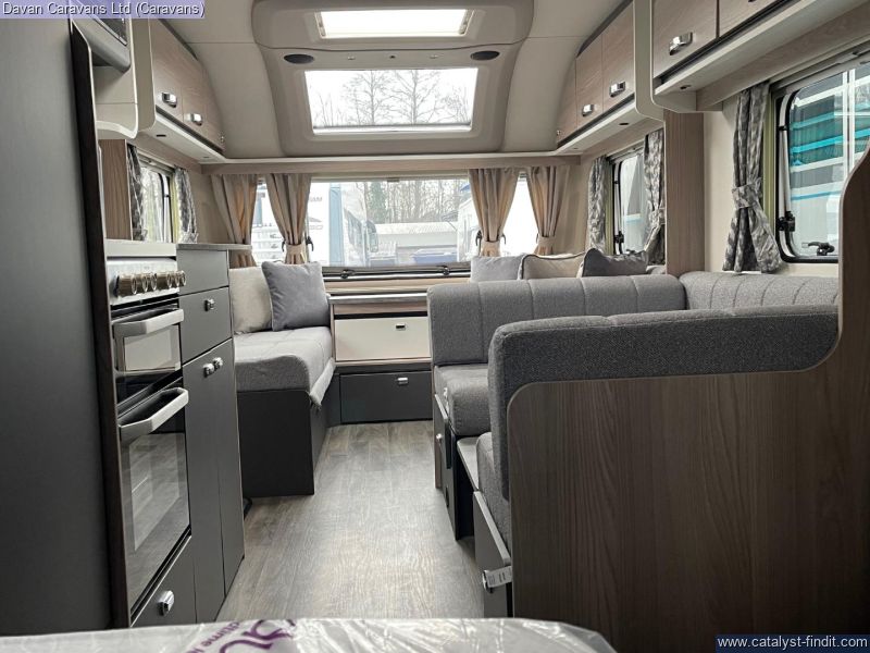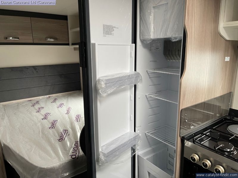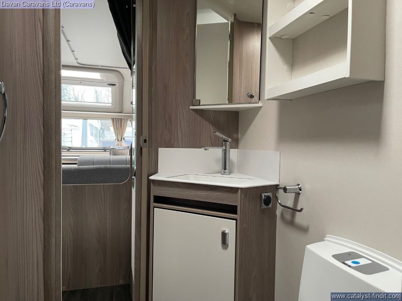 The front lounge converts seamlessly into a comfortable double bed, and at the rear the fixed French bed features a supportive memory- foam mattress and ambient LED surround lighting. Premium soft- touch fabrics, European-style cabinetry and subtle mood lighting combine to deliver a refined residential feel, ensuring every journey feels like a boutique retreat on wheels. was £31,940 This caravan includes: