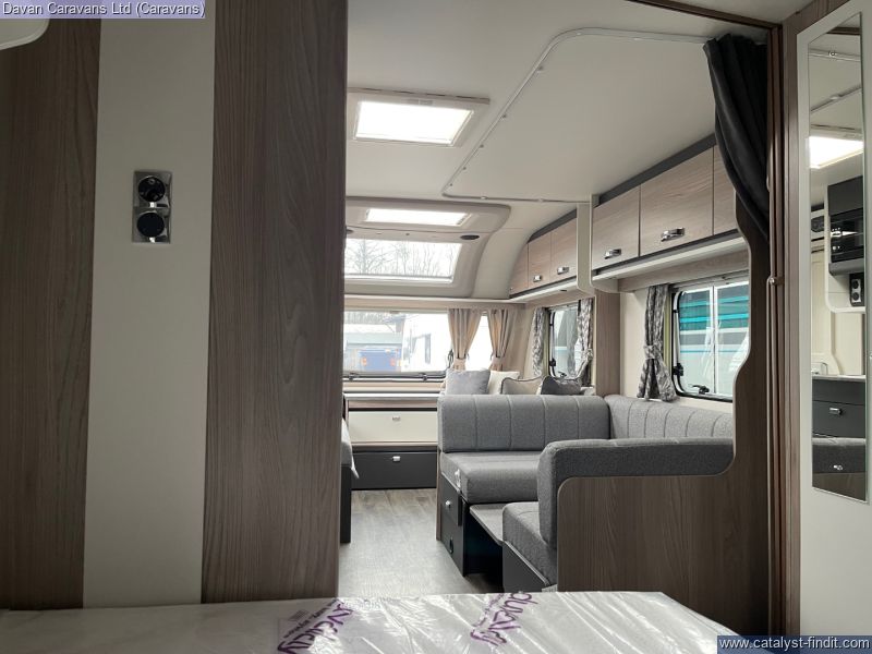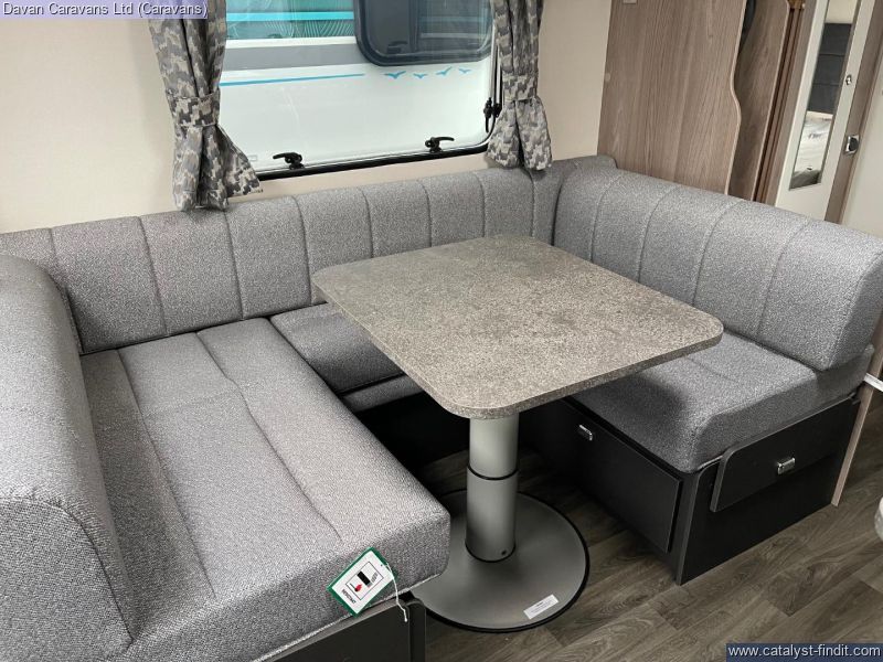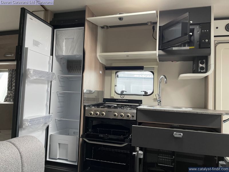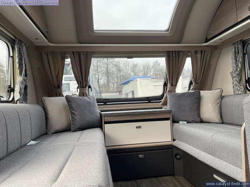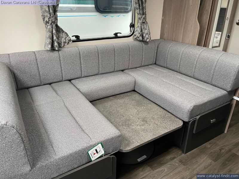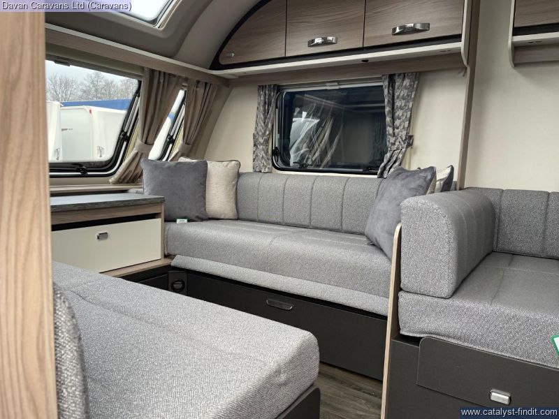 The 2025 Swift Quattro FB Grande. A twin axle caravan with a fixed bed, where family-focus meets cutting-edge design in a spacious Six-berth layout. Built on the renowned Al-Ko chassis, this flagship model promises effortless towing, rock-steady stability and class-leading fuel efficiency. Its aerodynamic bodywork, striking exterior decals , while the panoramic rooflight floods the interior with natural light, creating an inviting touring caravan that turns heads wherever youroam.