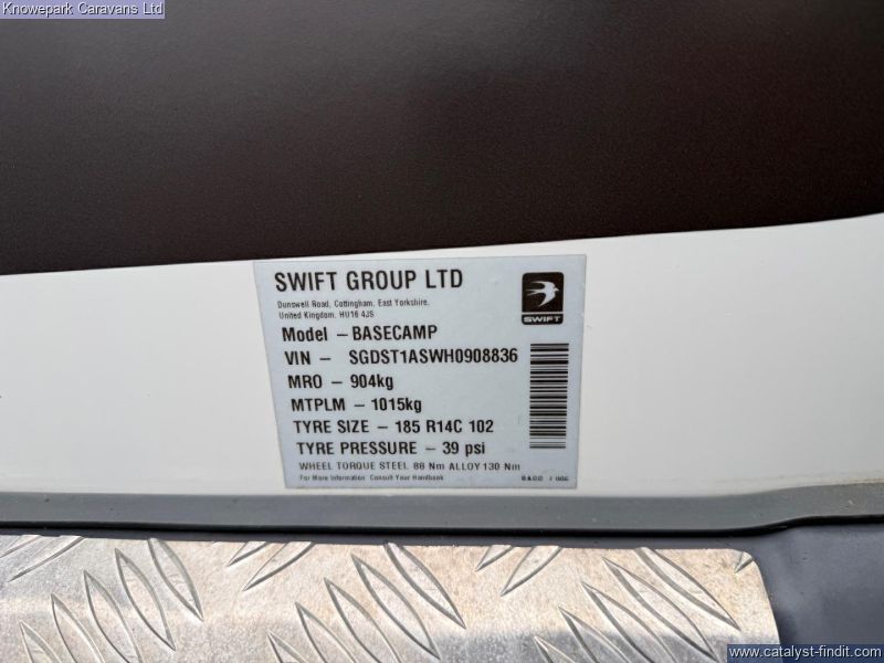 2017 SWIFT Basecamp 2 Previous Slide ◀︎ Next Slide ▶︎ 21 2017 SWIFT Basecamp 2 £15,495 £15,495 Details fresh as of 19/04/2026 12:01 Call: 01506 411827 Email Dealer Locate Dealer Website Share | Save Print Email a Friend Item Details 2017 Details Stock number: 22549New/Used: Used Dealer Address Knowepark Caravans Ltd Knowepark Caravans LtdHardie RoadDeans Industrial EstateLivingstonWest LothianEH54 8BA