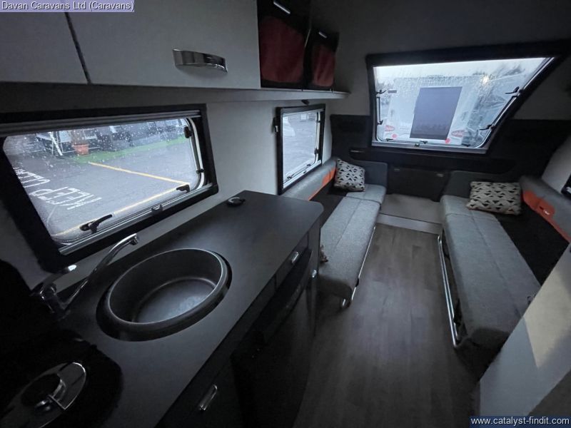 Designed with adventure in mind, the Basecamp combines a lightweight structure with a durable finish, making it easy to tow and suitable for a wide range of vehicles. Inside, the layout is thoughtfully arranged to maximise space, with seating that converts into a comfortable sleeping area, a functional kitchen equipped for everyday use, and a washroom that adds convenience on longer trips.