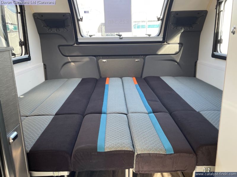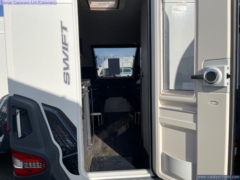 Step inside the Swift Basecamp 2 and experience how intelligent design transforms limited space into a cozy retreat. The front lounge, bathed in natural light through the wide window, converts in seconds into a sumptuous double bed, inviting sunrise views or starlit dreams.
