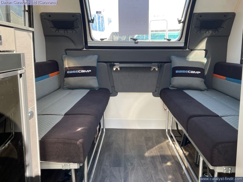 Discover the 2025 Swift Basecamp 2 for, a compact expedition caravan engineered for off-grid adventures without compromising on comfort. Its rugged all-terrain chassis and bold exterior graphics signal your intent the moment you arrive, while aerodynamic curves and a panoramic front window ensure each journey is as efficient as it is eye- catching. Towing remains effortless behind family SUVs or mid-sized hatchbacks, turning narrow lanes and steep trails into invitations rather than obstacles.