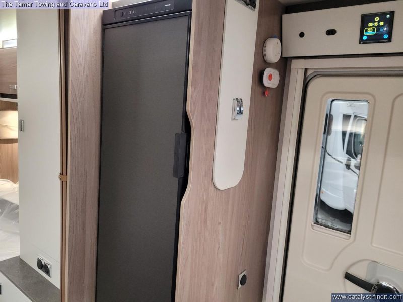 - Key Features: 1. New Theford tall 142 litre fridge Freezer 2. NEW Truma CombiNEO 2 in 1 heating sytem & hot water. 3. NEW 15" Alloy wheels 4. NEW sprung seat bases and tri-foam backrests for optimal seating, sleeping comfort and easy storage. 5. LED lighting throughout with over-locker lights, lounge downlights, wireless charging pad and front USB points for better connectivity. 6. Thetford oven/grill with three-burner gas hob and one electric hotplate. 7. Solar Panel 6. Swift Smart Construction