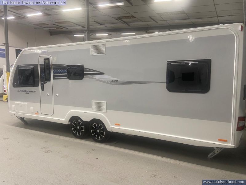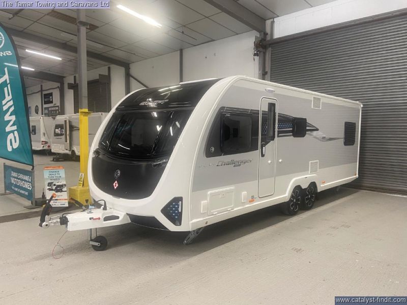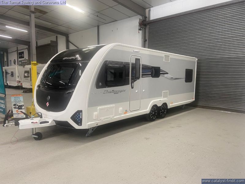 - The Swift Challenger Grande 630 is a 8ft wide 6 berth twin axle touring caravan with an end bedroom with fixed bed. There is a central style washroom with toilet and wash on one side and the shower on the other. There is a lovely L- Shape lounge and U-Shape dinnette. This is a great family caravan.