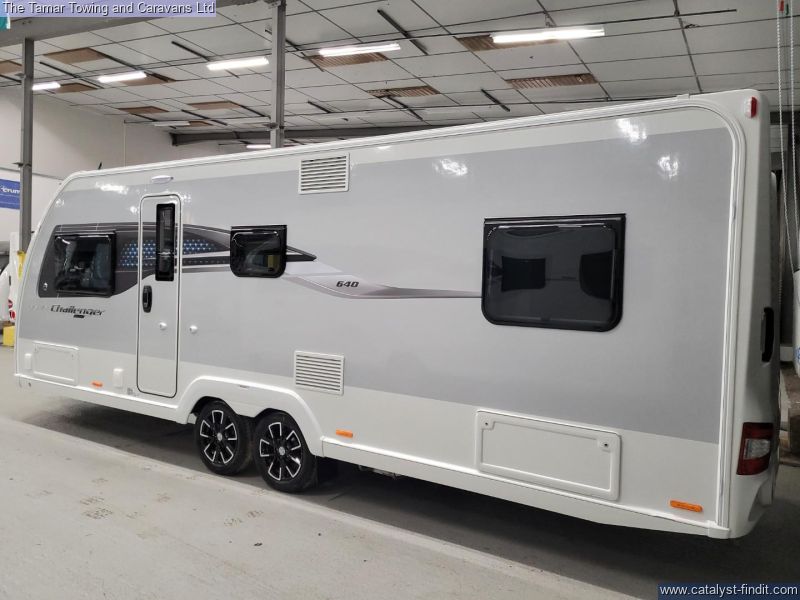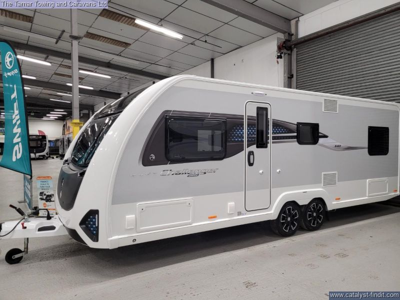 - The Swift Challenger Grande 640 is a 8ft wide 6 berth twin axle caravan. This layout offers fabulous space for the whole family with a lovely open plan and spacious styling.