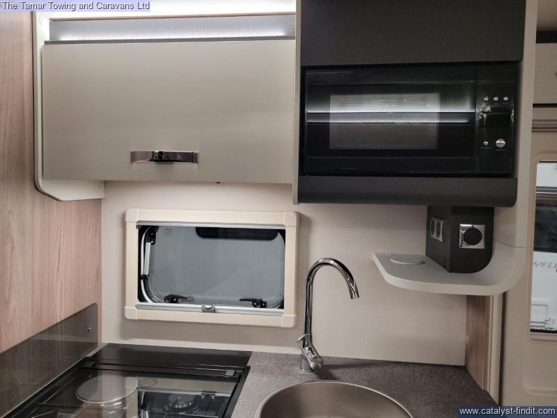 - 8ft wide for increased living space Half diamond cut alloy wheels Roof mounted 120W solar panel BBQ point Wireless phone charging pad Atmospheric lounge and kitchen lighting