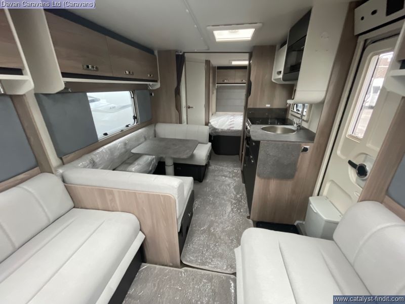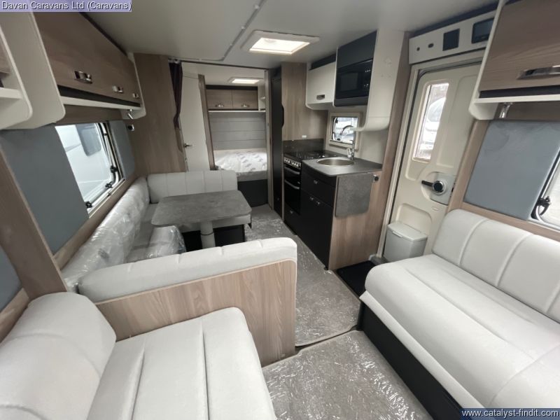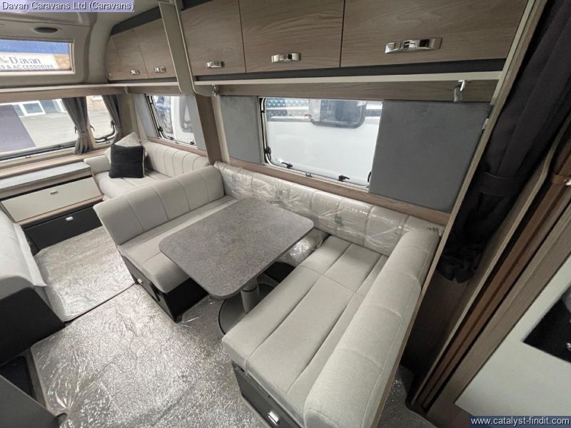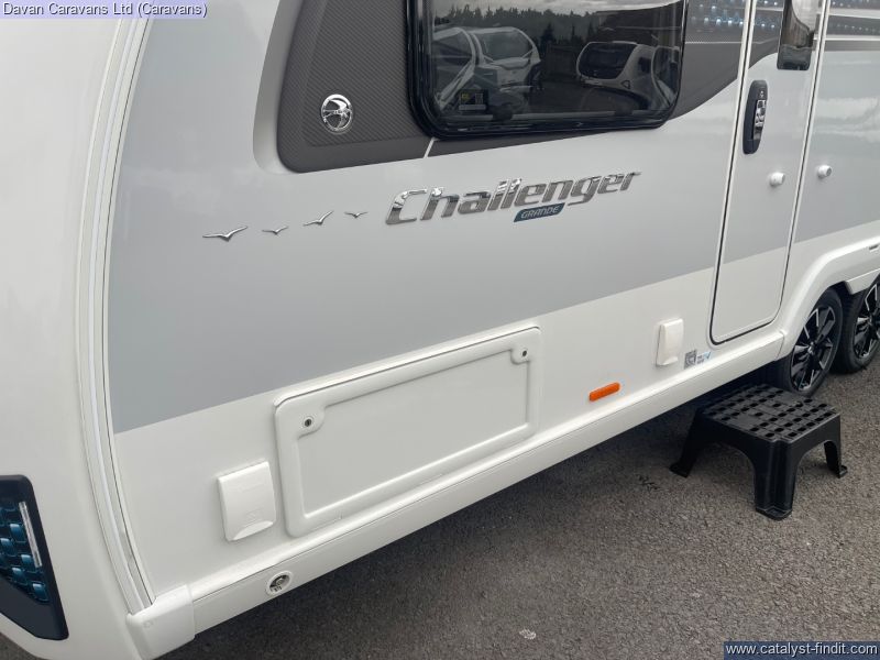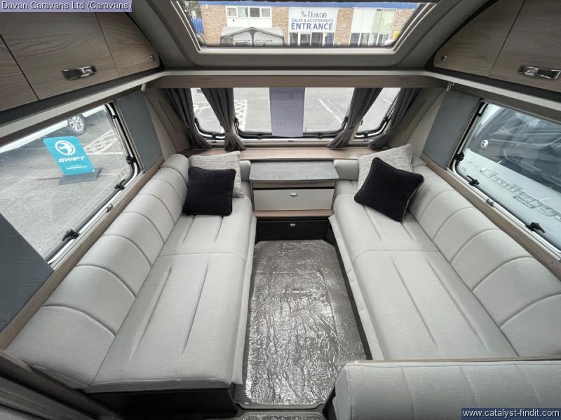 - 2026 Swift Challenger Grande 640 - 8ft wide twin axle caravan with rear fixed bed and dinette that converts into a double bed. Making this a perfect layout for couple and families alike. A perfect balance between affordability and amount of spec. Designed for families and seasoned caravanners alike the challenger range offers a modern, well quipped space at an affordable price. It builds on the essentials with added comfort including the NEW Truma CombiNEO for continuous hot water. Ideal for longer showers or back to back showers for the whole family. Challenger is made for easy getaways, comfortable living and memorable holidays.