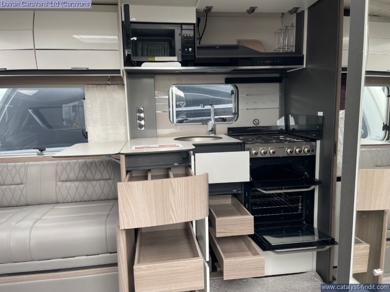Ambient LED lighting and premium upholstery create a warm, inviting atmosphere that makes every evening feel like a getaway. Island Bed This caravan includes: