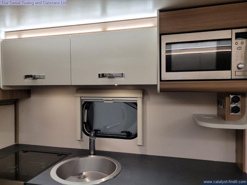 - There is the usual 2 single seats at the front that also make into a large double bed for sleeping. In the centre on one side you have the dinette area with a cantelever bunk bed for sleeping with a single bed once the dinette is converted below.Opposite this you have the kitchen area with the usual kitchen sink, fridge-freezer, microwave & gas hob, oven & grille.