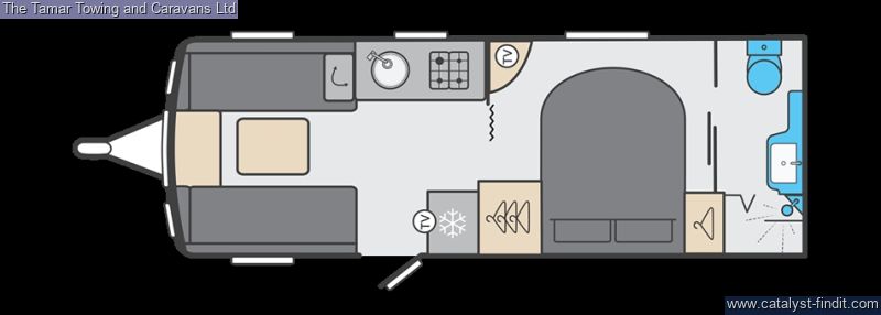 - The Major 4SB is a very popular 4 berth, single axle caravan with Island bed. There are parallel seats at the front that will pull out to make a double bed. There is a well equiped kitchen with plateless microwave, oven, grill and 4 burner hob one is electric. There is also a lovely tall slimline fridge with freezer compartment. Step through to the bedroom area with lovely island bed with Duvalay mattress. Either side of the bed is a wardrobe and above he bed are two overhead lockers. At the rear isthe washroom with toilet, wash basin and seperate shower.