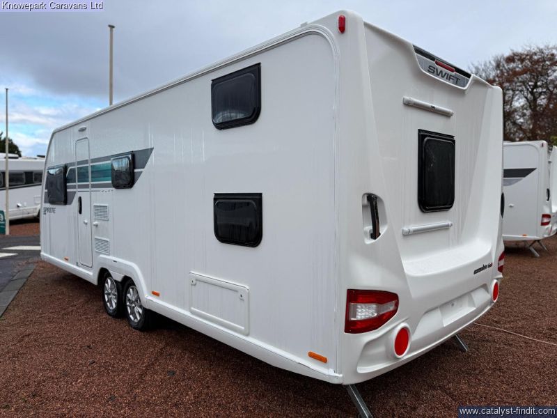- Discover the ultimate in family touring comfort with the Swift Sprite Quattro DB Grande — an 8-foot-wide twin-axle caravan designed to deliver space, practicality and premium style.Inside, the generous width provides a boldly spacious front lounge with an extra seven inches between seats compared to standard models, making it perfect for relaxing in style. Swift Group. At the rear you’ll find dedicated bunk beds and a large washroom with separate shower — ideal for accommodating up to six people cpmfortably. Whether you’re planning long summer adventures or cosy breaks through the shoulder seasons, the Sprite Quattro DB Grande offers the ideal blend of family-friendly layout, specification and style.