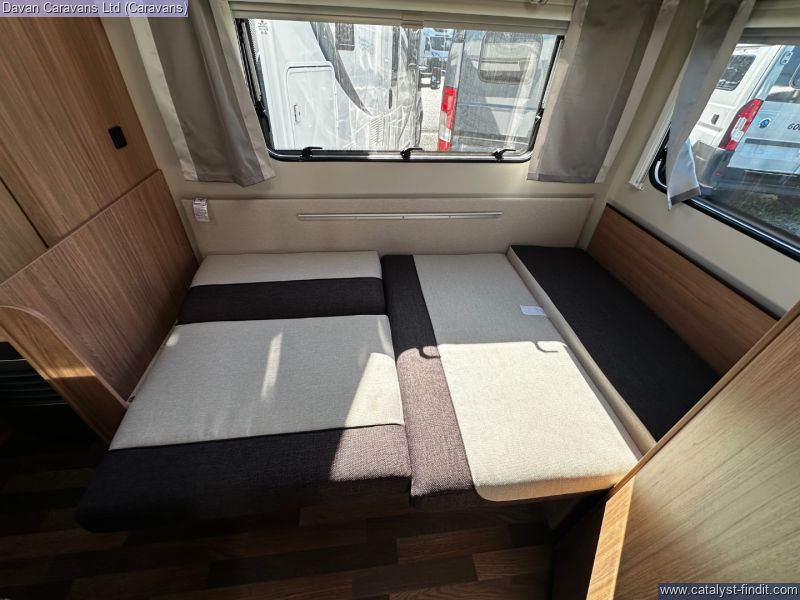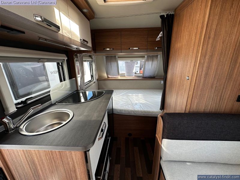- The 2025 Weinsberg CaraOne 390QD may be compact in footprint, but once inside, it’s all comfort and clever design. It welcomes you with warm wood tones, soft LED lighting, and a layout that understands life on the move. Under 6M. Step inside and you’re greeted by a fixed front double bed, ready and waiting—not just for sleep, but for slow Sunday mornings or starry night retreats. Surrounded by airy windows and discreet storage, it creates a welcoming space that feels surprisingly generous for its footprint.Further back, the central kitchen is unfussy and functional, with everything at your fingertips—hob, fridge, sink, and enough surface to prep without juggling pans. Opposite sits a cosy dinette that transforms into an occasional bed, ideal for young travellers or four-legged companions. The rear corner houses a tidy washroom, neat and practical, completing a layout that knows exactly what a couple or small family needs.It’s light to tow, stylish without being flashy, and cleverly laid out to make every inch count. Whether you're trading up or just starting out, the 390QD delivers simplicity that feels like luxury—without overcomplicating things.