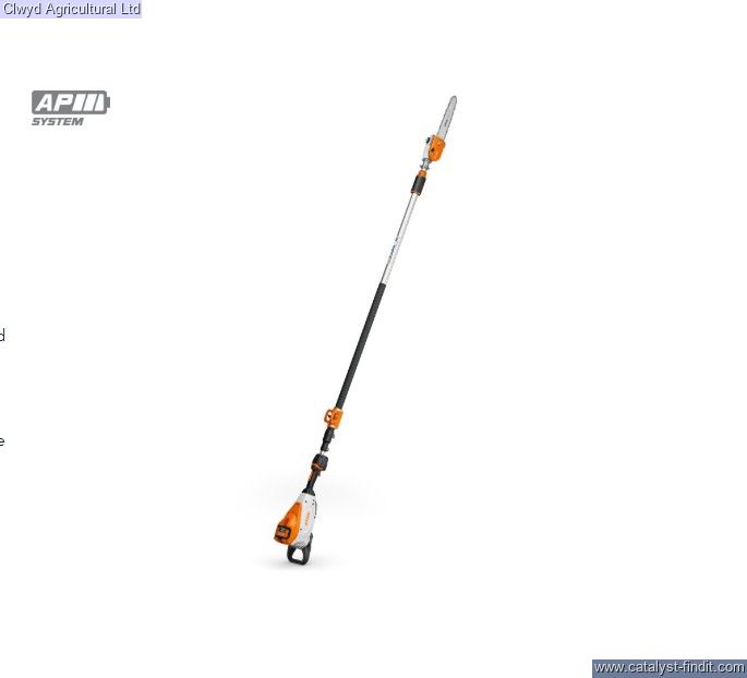 - THE MOST POWERFUL STIHL CORDLESS POLE PRUNER. LOW-VIBRATION. FOR PROFESSIONAL USE IN TREE MAINTENANCE, ORCHARDS AND LOCAL AUTHORITIES. FOR PRUNING TREES, REMOVING DEAD WOOD AND BREAKAGE FROM STORMS, AND FOR CUTTING BACK FRUIT TREES. 3/8" P SAW CHAIN, LIGHTWEIGHT MAGNESIUM GEARHEAD, STURDY BRANCH HOOK FOR EASY REMOVAL OF LOOSE CUTTINGS FROM THE TREE. PARTICULARLY RIGID-IN-GUIDANCE PROFESSIONAL TELESCOPIC SHAFT WITH RAPID ADJUSTMENT FOR PRECISE BITING CHARACTERISTICS AND A PRECISE CUT.
