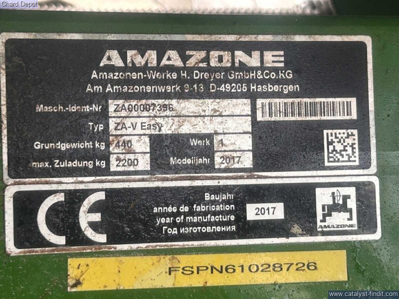 2017 AMAZONE ZA-V FERTILIZER SPREADER Previous Slide ◀︎ Next Slide ▶︎ 10 2017 AMAZONE ZA-V FERTILIZER SPREADER £CALL £CALL Details fresh as of 27/02/2026 07:29 Call: 01460 980010 Email Dealer Locate Share | Save Print Email a Friend Item Details 2017FERTILISER SPREADER Details Stock number: 6367New/Used: Used Dealer Address C J Cox Ltd Mark RoweChard DepotLower AshStreet Ash LaneChardSomersetTA20 3HZ
