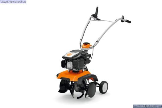 - THE STIHL TILLER MH 445 IS IDEAL FOR USE ON CONFINED PLOTS OF LAND AND SMALL FLOWER BEDS. COMPACT DIMENSIONS AND A STANDARD WIDTH OF 45 CM ENSURE A HIGH DEGREE OF MANOEUVRABILITY WHILE WORKING. THE WORKING WIDTH CAN BE REDUCED TO 25 CM TO PLOUGH PARTICULARLY NARROW ROWS. THE POWERFUL, DURABLE STIHL EVC PETROL ENGINE HELPS YOU MAKE QUICK AND EASY WORK OF TURNING THE SOIL. THE BLADES DIG INTO THE GROUND, BREAK UP CLODS OF EARTH AND MIX THE SOIL WITH AN OPTIMISED BURROWING ACTION. THE HEIGHT-ADJUSTABLE BRAKE SPUR GUARANTEES PRECISION CONTROL. THE ANTI-VIBRATION SYSTEM ABSORBS THE MAJORITY OF VIBRATIONS FROM THE ENGINE, WHICH MINIMISES FATIGUE AND ALLOWS YOU TO OPERATE THE TILLER FOR LONGER. EFFECTIVE BALANCING AND THE CENTRAL HANDLEBAR ADJUSTMENT FEATURE ENSURE COMFORTABLE HANDLING, ALLOWING YOU TO GUIDE THE MACHINE ERGONOMICALLY AND WITH MINIMAL EFFORT. PRIOR TO PERFORMING CLEANING OR ASSEMBLY WORK, THE STIHL MH 445 CAN BE TIPPED ONTO ITS TRANSPORT WHEELS TO GIVE EASIER ACCESS TO THE BLADES.