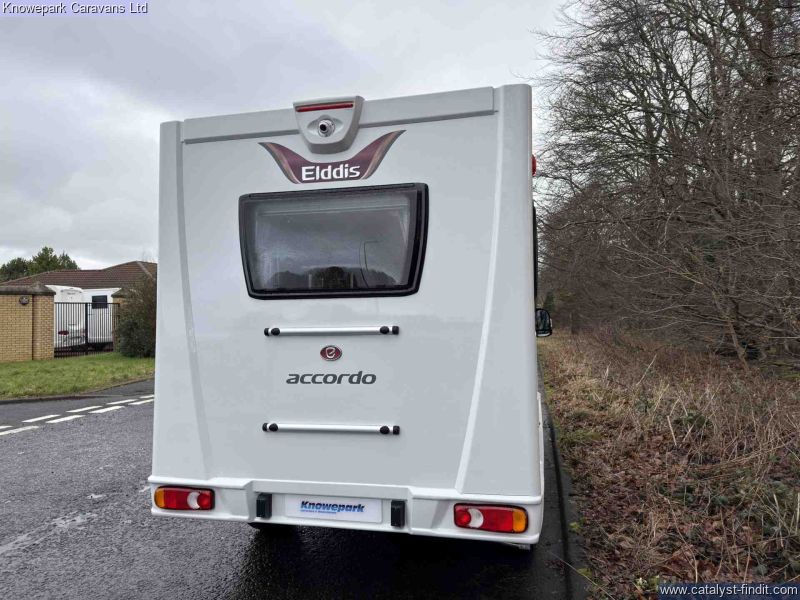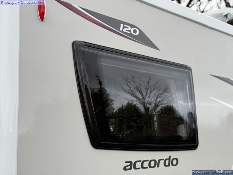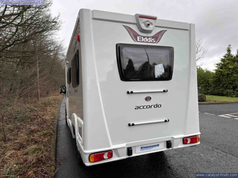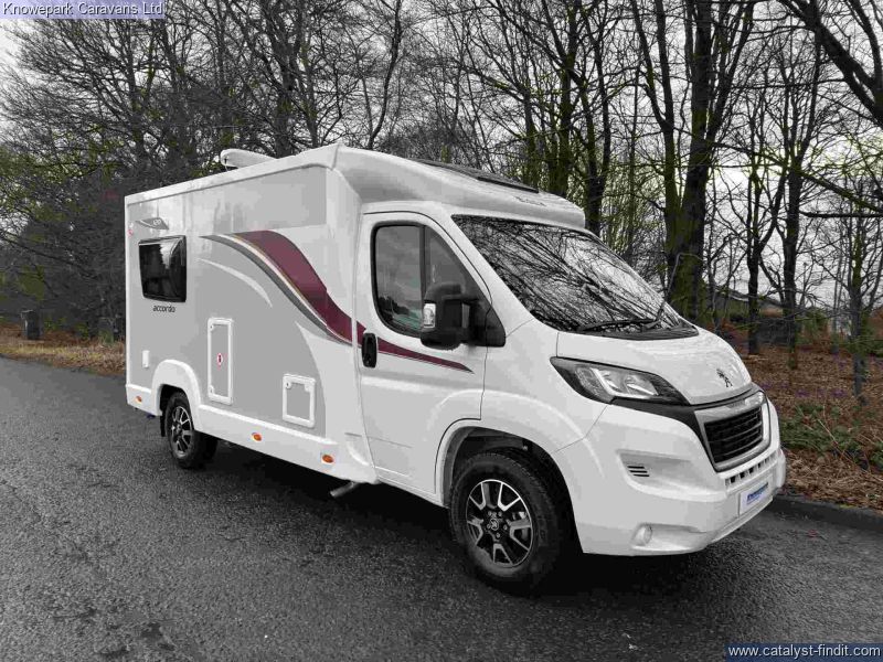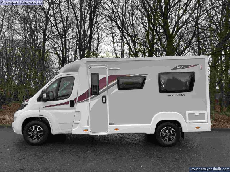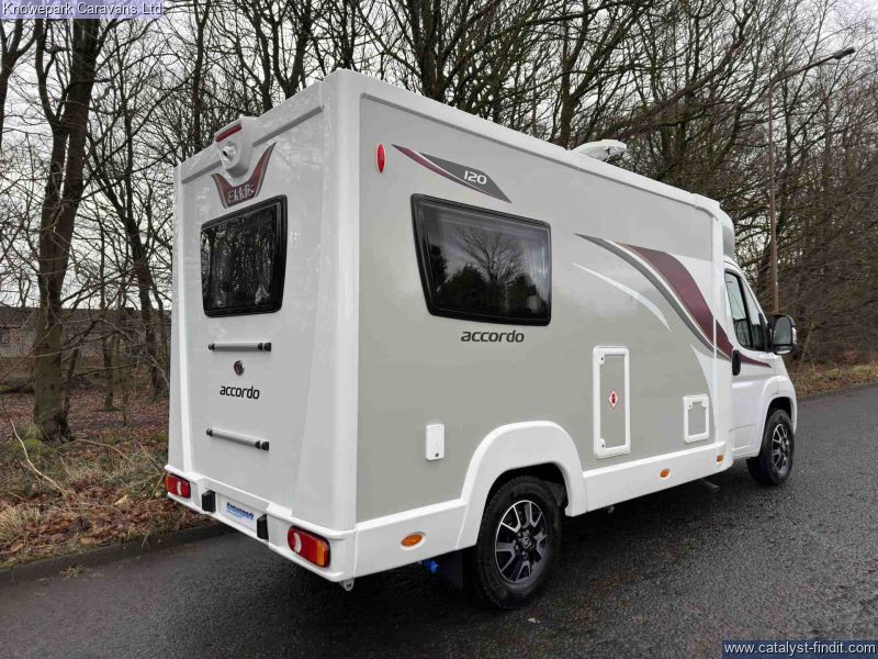 - The Elddis Accordo 120 is a stylish and practical 2-berth motorhome, perfect for couples seeking adventure without compromising on comfort. Measuring just under 6 metres in length, it offers the agility of a van conversion with the spaciousness of a coachbuilt design.Key Features: Sleeping Arrangements: Rear lounge with parallel bench seats that easily convert into two single beds or a generous double bed, providing flexible sleeping options.Kitchen: Fully equipped side kitchen featuring a 3-burner gas hob, combination oven and grill, microwave, and a 95-litre dual- fuel fridge, ensuring all your culinary needs are met on the road.Bathroom: Compact yet functional washroom with a shower, toilet, and vanity unit, designed to maximize space without sacrificing convenience.Driving Comfort: Built on Peugeot Boxer 2.2L 140bhp HDi Turbo Diesel engine with a 6- speed manual gearbox, offering a smooth and efficient drive. Standard features include cruise control, manual air conditioning, DAB radio, and electrically heated adjustable wing mirrors.Additional Amenities: Equipped with alloy wheels for enhanced aesthetics, a microwave for quick meals, and a rear-view system to assist with parking and maneuvering.With its compact size, comprehensive features, and thoughtful design, the Elddis Accordo 120 is an excellent choice for couples looking to explore in comfort and style.Finance Available.