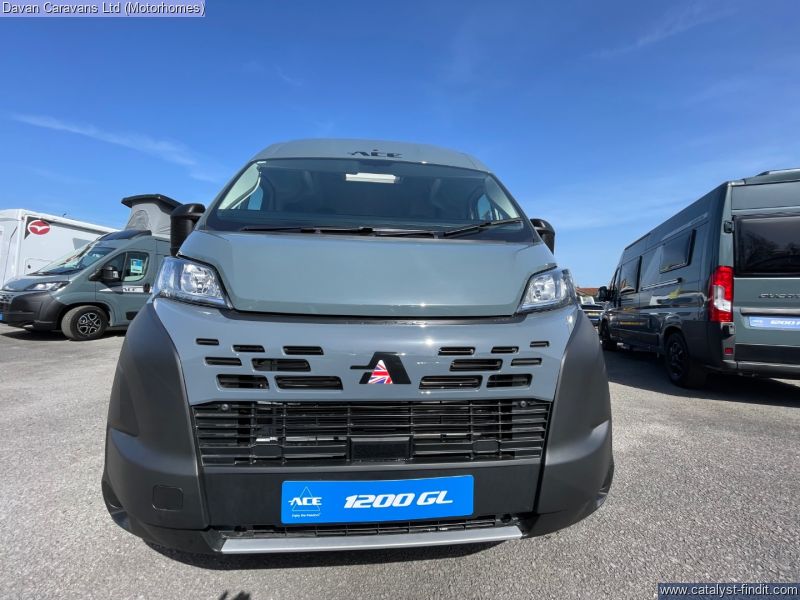 - The Ace 1200 GL is a practical, Spacious Fiat based panel van with lots of living space, Storage and comfort. The 1200 GL features upolstered swivel seats, 2 Burner hob, Built in microwave, 80l fridge and fold away table extension, Whale blown air heating system, practical washroom with fold away sink, casette toilet and ecocamel jetstorm shower head, 91L Fresh water tank and 58l waste water tank. Davan have ordered this vehcile with the drivers pack and as an automatic (140bhp 2.2l) Please call our sales team on 01934 524 242 to discuss this model.