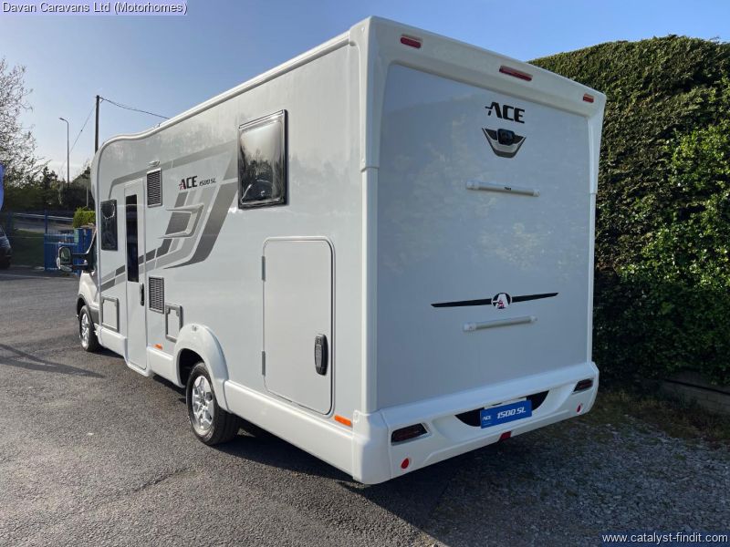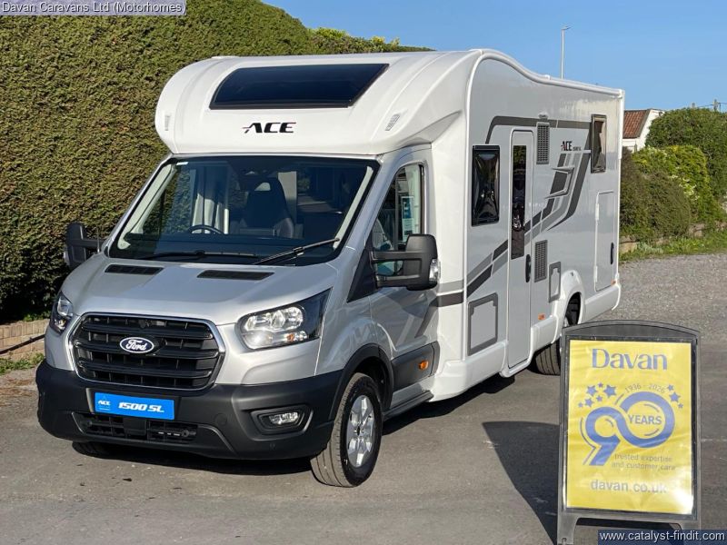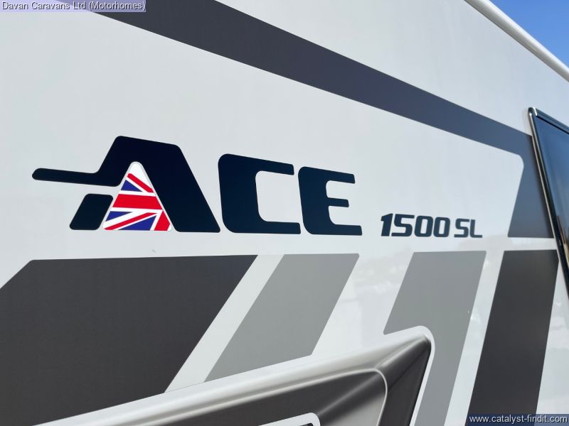 - The Ace 1500 SL is a spacious 2 berth Ford based motorhome boasting plenty of stroage and space to relax alongside being practical and reliable. The 1500 SL features a spacious rear twin bed with a seperate shower/toilet comfortable lounge and a generous sized garage. This 1500 SL includes cruise control, Swivel captains seats, insulated rear garage with lighting, heating and sockets, Grade 3 rated heating and thermal insulation, Three burner gas hob, 133l fridge with 12l freezer compartment, Duvalay mattress, 110l fresh water tank and 85l waste water tank. This 1500 has also includes the drivers pack and the 140bhp 2.2l automatic gearbox upgrade. Please give our sales team a call on 01934 524 242 to discuss this model.