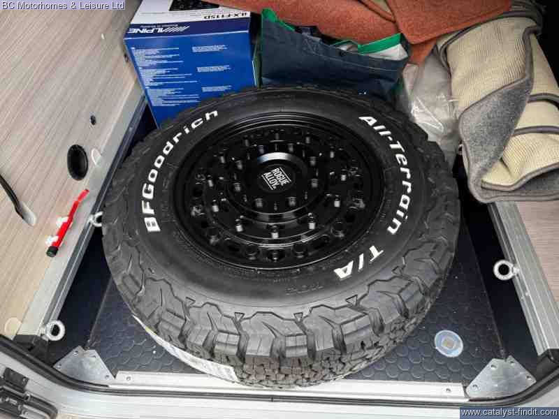 - Key Features & Upgrades: Self-levelling system for effortless setup anywhere Rear air suspension for enhanced ride quality and stability 360-degree camera system for complete visibility and easy manoeuvring Integrated awning for outdoor living space Gas BBQ point perfect for al fresco dining External shower point for added practicality Full set of carpets for a homely interior finish Alarm and tracker system for peace of mind Air conditioning for year-round comfort BFGoodrich alloys and tyres for a rugged, premium look and performance Tow bar for added versatility Onboard WiFi connectivity 2x leisure batteries for extended off-grid capability Electric entrance step for ease of access Solar Panel