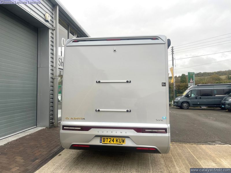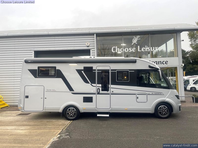 - Complete with Smart automotive styling and contemporary interior with luxurious furniture style and textiles, offering uncompromised comfort and all-year round performance. Sonic has an elegant home-style feeling, with contemporary interior design, offering uncompromised style and comfort. Versatile lighting inclused LED, spot light and ambient lights. Beautifully organised storage with large cupboards, wardrobe and innovative solutions. Advanced easy-to-use digital control panel and a range of multimedia solutions including TV point, USB phone charging surface and sound system with hidden speakers. The Adria Sonic Supreme 700 DC offers the ever popular rear bedroom with fixed island bed, central washroom facilities with a separate shower cubicle, and a spacious lounge area with an electric drop down bed overhead. With lots of features added to ensure your safety, comfort and enjoyment. This Adria has been built to enjoy!