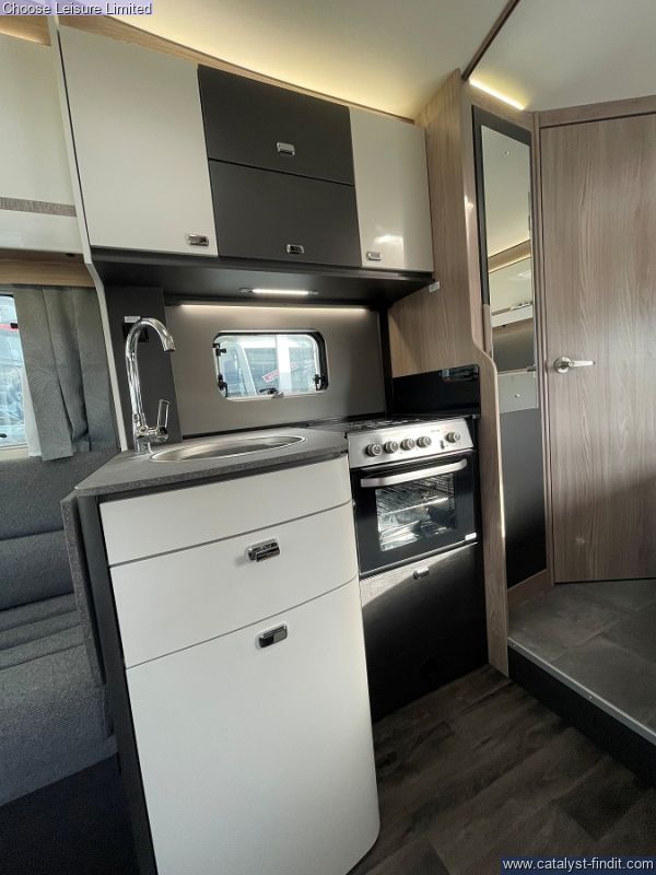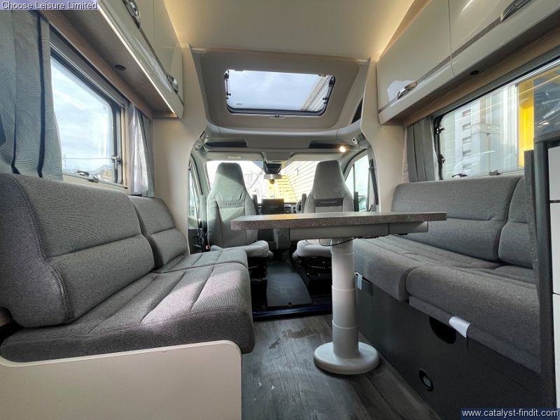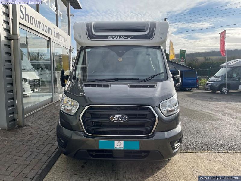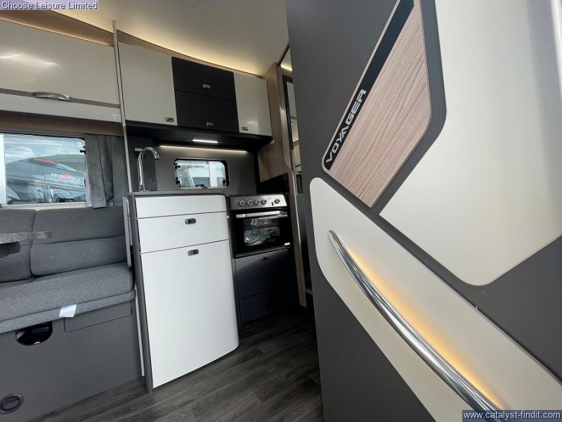 - Inside, the refreshed soft furnishings elevate the spacious, family-friendly interior, making it the perfect choice for those who want to explore the world in style and comfort. Take the Swift Voyager wherever the road leads. Built on a Ford Transit Skeletal chassis with a powerful engine, it’s ready for everything from cobbled streets to winding country lanes. Designed with family adventures in mind, it offers plenty of smart storage for all your getaway gear, from bikes and boots to beach gear and beyond, so you're always ready to make the most of every stop. Revolving captain's chairs and an electric rise-and-fall dining table ensure the Voyager is perfect for both relaxation and entertaining. When it’s time to cook, the Voyager is ready with a Thetford oven and grill, three-burner gas hob with an electric hotplate, and a large Dometic fridge with 133L of storage space - including a removable freezer compartment. Stay connected on the go with the FordPass app. Unlock smart features like remote locking, so you never have to worry about whether you’ve locked your motorhome. The SecuriAlert system will notify you if anyone tries to unlock or break into your Voyager, offering added peace of mind. Technical: