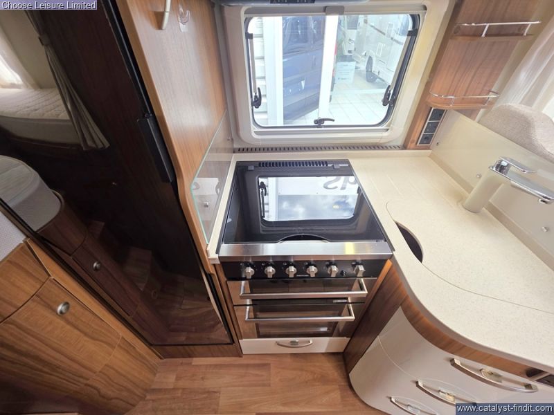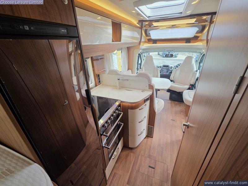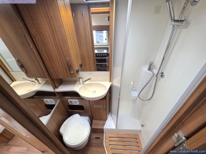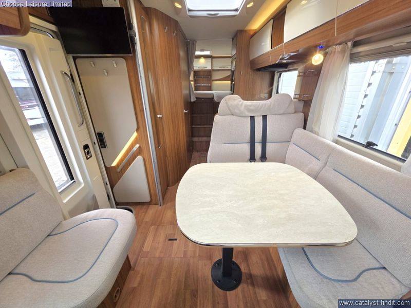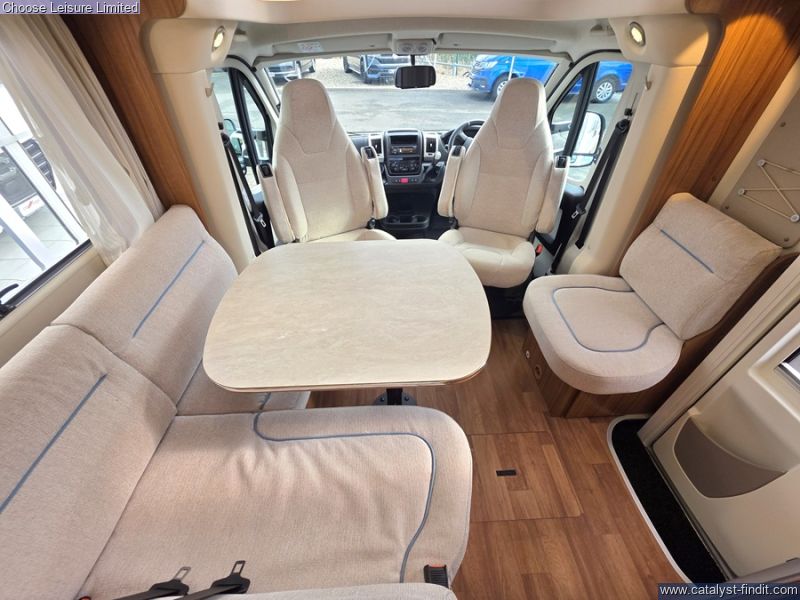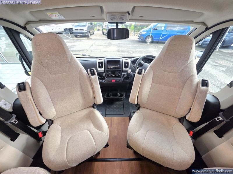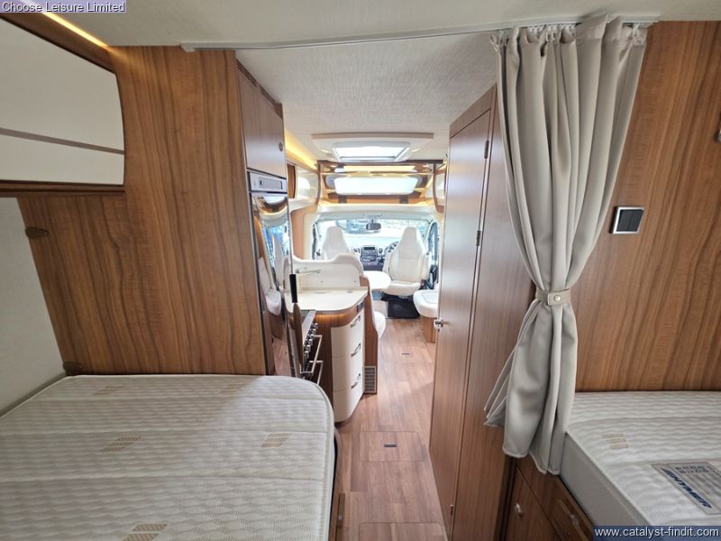 - The L-shaped front seating area is improved enormously by the 360-degree rotating table. When the cab seats are swiveled, a family of 5 can easily dine at the table. There is a well-planned kitchen to the centre with a large fridge freezer to store all of your perishables. The appealing and functional rear bedroom is made up of two single beds, with the addition of a full length wardrobe - perfect for keeping your holiday clothes organised. The comfort bathroom has a shower cubicle which can be closed off to provide an additional clean, dry standing area in front of the wash basin. An elegant motorhome wherever you're bound! Technical: